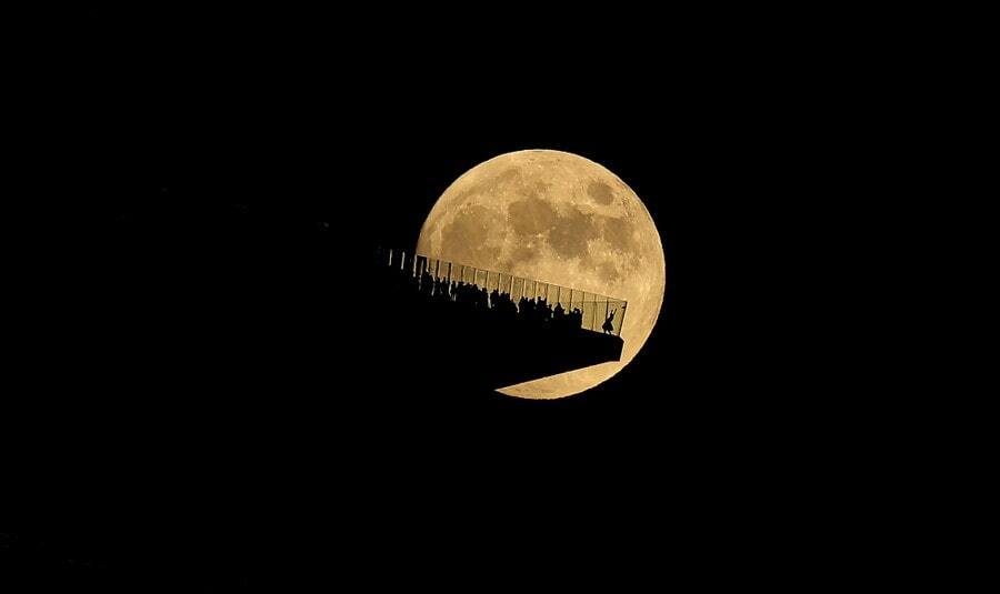 5. Полная луна восходит за смотровой площадкой EdgeNYC перед лунным затмением в Нью-Йорке 7 ноября 2022 года