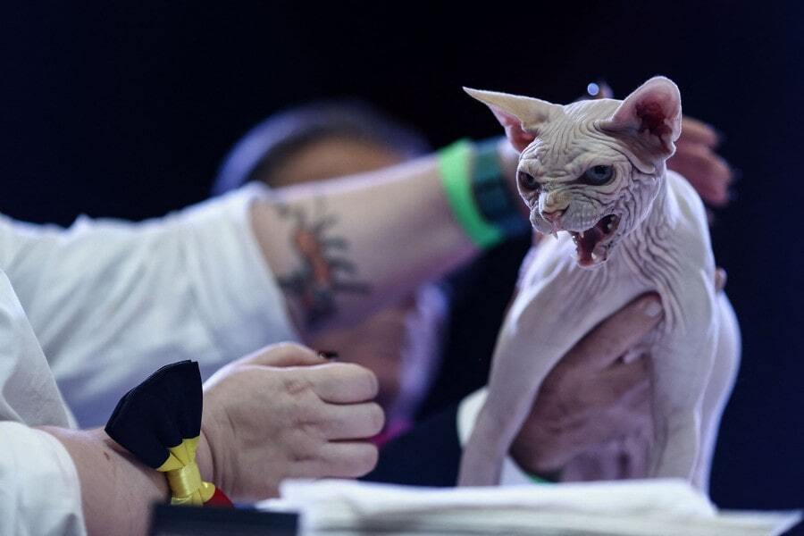 11. Судья оценивает кошку во время ежегодного конкурса «Самые красивые кошки в мире», организованного Национальной федерацией кошек в Машелене, недалеко от Брюсселя, Бельгия, 30 октября 2022 года