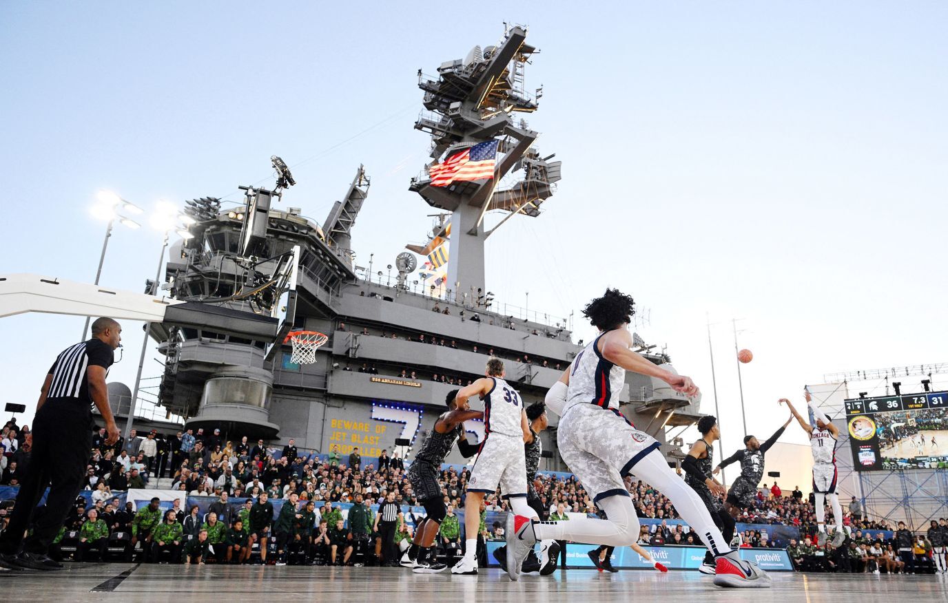 19. Баскетбольный матч на борту авианосца «Авраам Линкольн», пришвартованного в Сан-Диего, США, 11 ноября 2022 года