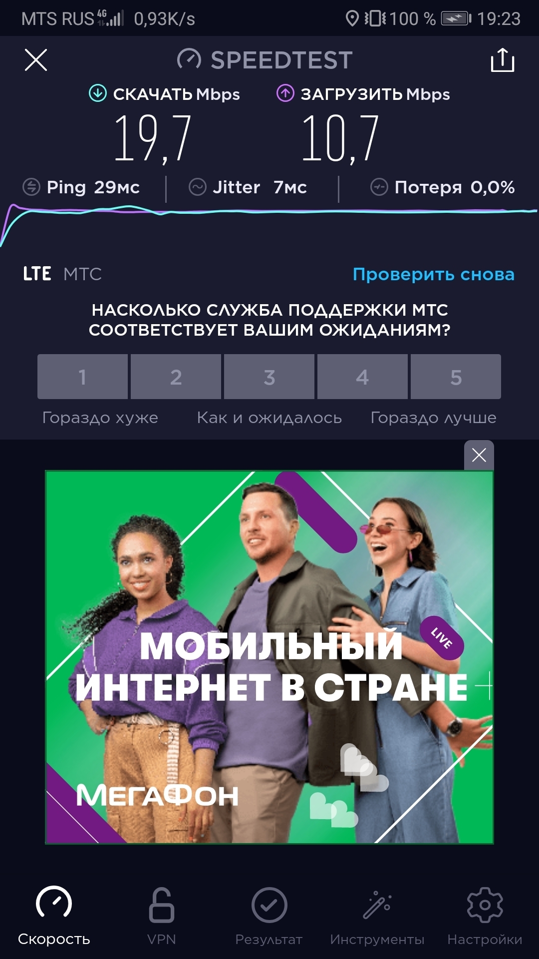 Несколько дней назад получил сим-карту "самого быстрого интернета в РФ", и с самого начала имею такие шикарные скорости: