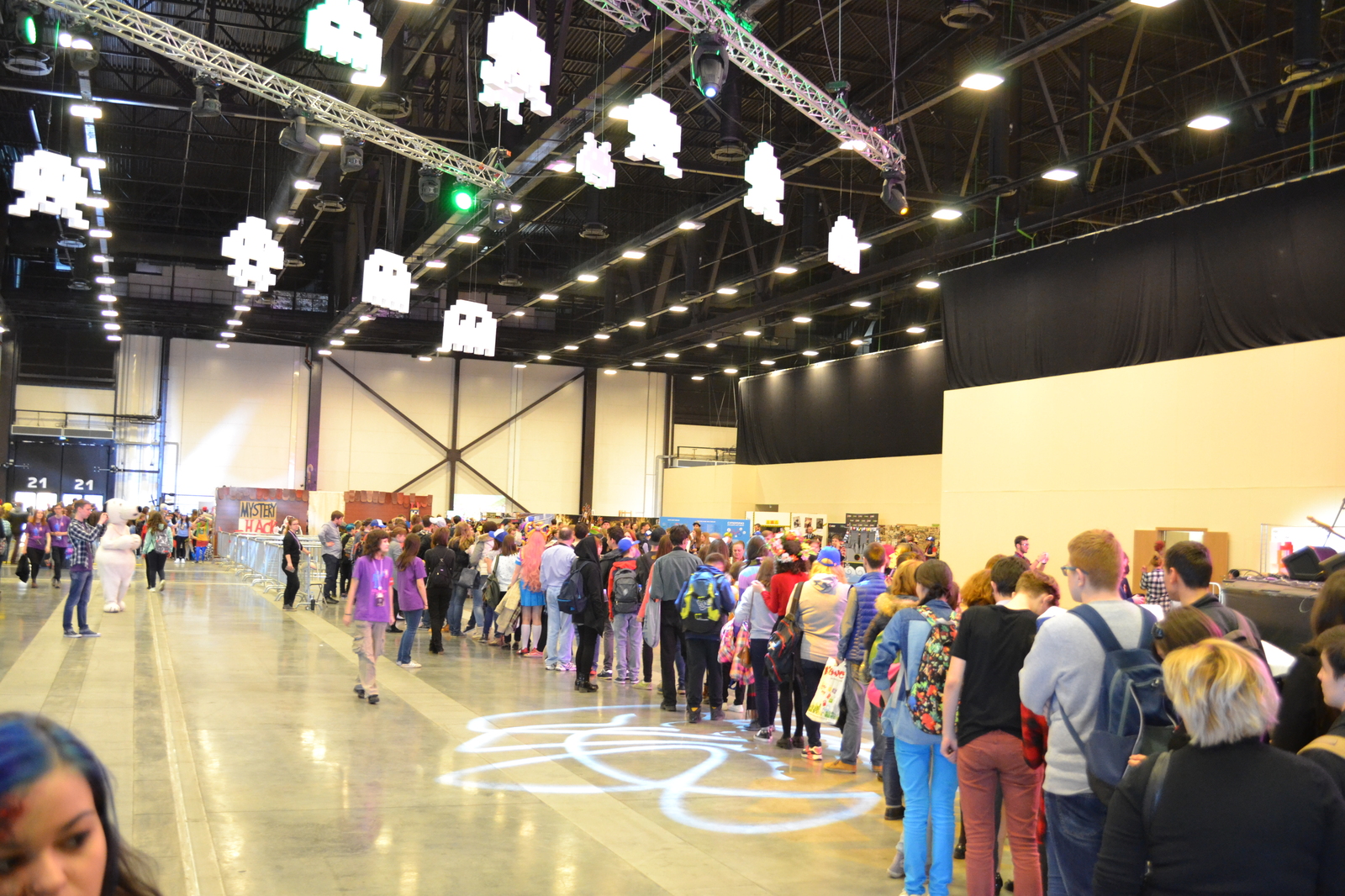 Это длинная очередь за талонами на автограф к Алексу Хиршу. Его произведение Грэвити Фоллз я посмотрела совсем недавно но мультфильм мне запал в самую глубину души. Из за того что я немного припозднилась, я не успела занять в очередь. Но я не расстраиваюсь ведь день был самым лучшим в этой жизни))