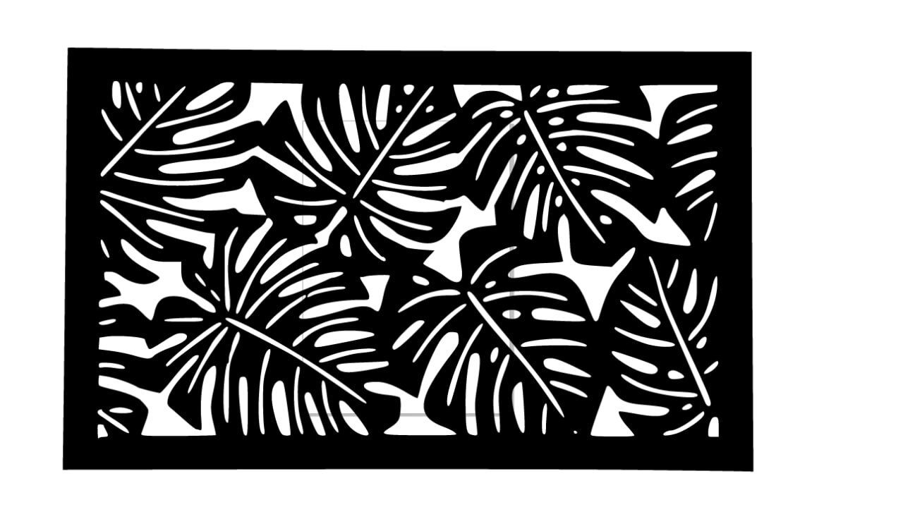 Тут скрин с видео, поэтому качество не ахти. После того, как эта планка ко мне приехала - всё подправил и начал рисовать полностью экран. Выбран был рисунок монстеры, векторизирован и получился вот такой рисунок:
