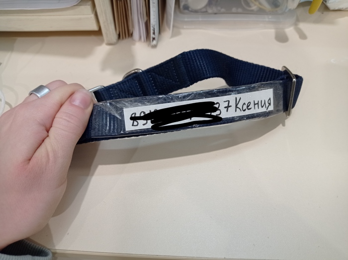 Я делаю всегда с противоположной стороны от застёжки, потому что она тяжёлая, и если собака вдруг убежит, застёжка перевести вниз, и телефон будет как раз очень хорошо видно.