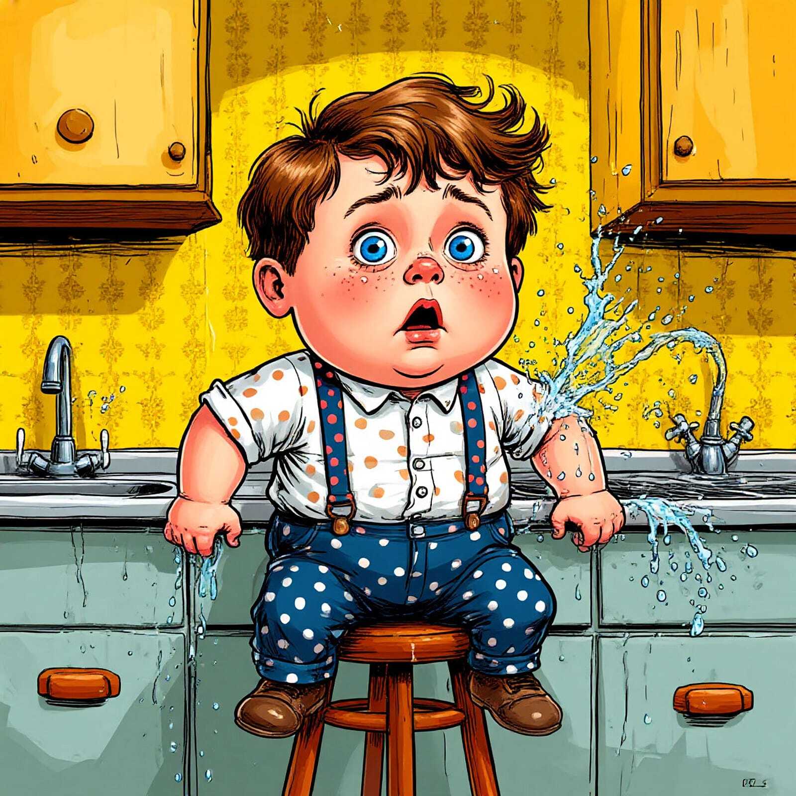 Пухлячок в подтяжках, я решил попить воды из крана. Зацепился за него, повис, как мешок картошки, и… молчал. Родители спохватились, только когда ключица уже хрустнула. Вывод: если ребёнок внезапно замолчал — бегите спасать.