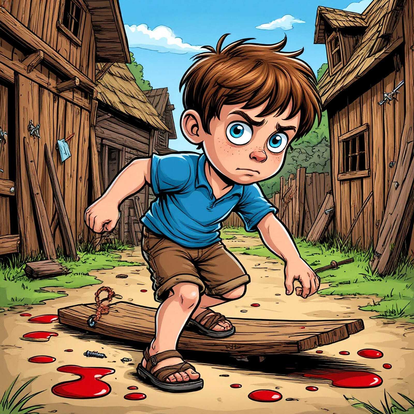 На заре нашей деревни, когда ещё пахло свежими досками, я носился по стройматериалам в сандаликах. Идеальный ребёнок для инструкции «как не надо». Наступил на гвоздь — тот пробил подошву насквозь. Пришлось топать домой, прихрамывая, а за мной волочилась окровавленная доска, будто лыжа из фильма ужасов. 👟🔨
