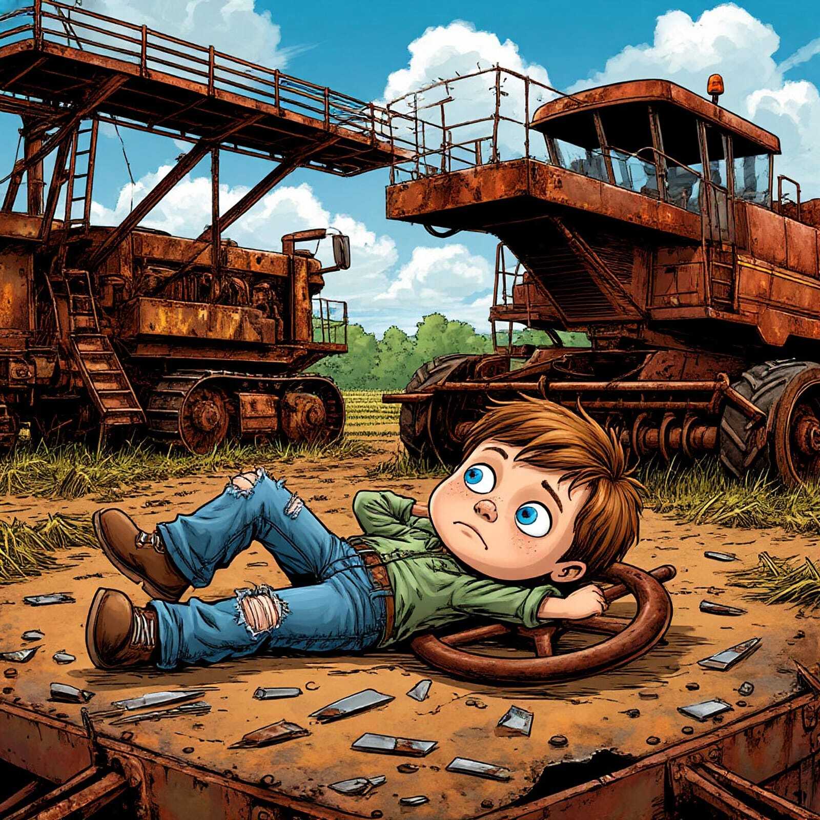Наше любимое место — «Кладбище машин», куда свозили ржавые комбайны и трактора. Один комбайн без кабины манил меня, как магнит: на трёхметровой высоте — площадка с рулём на палке. «Приватизируем!» — решили мы. Я крутил руль, пока гвоздь не сдался. С грохотом рухнул вниз, держа в руках «трофей», а вокруг — острые железяки. Лежал, смеялся сквозь боль. Осенью выяснилось: комбайн был рабочий. Дядя орал: «Кто руль снял?!». Мы получили… ну, вы поняли.