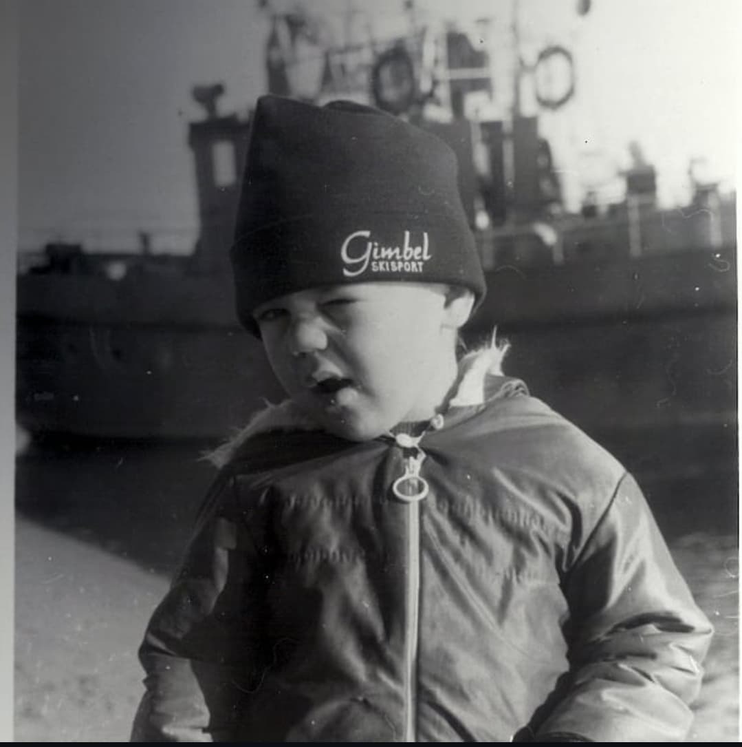 Мой дед — капитан корабля. Однажды я, впечатлённый его рассказами, полез по скользкому железному трапу на мачту (или как там это называется). Соскользнул, перелом — дед, наверное, гордился: «Настоящий моряк!» На фото я в спортивной шапке на фоне того самого корабля — живое доказательство, что море начинается с трапа в небо.