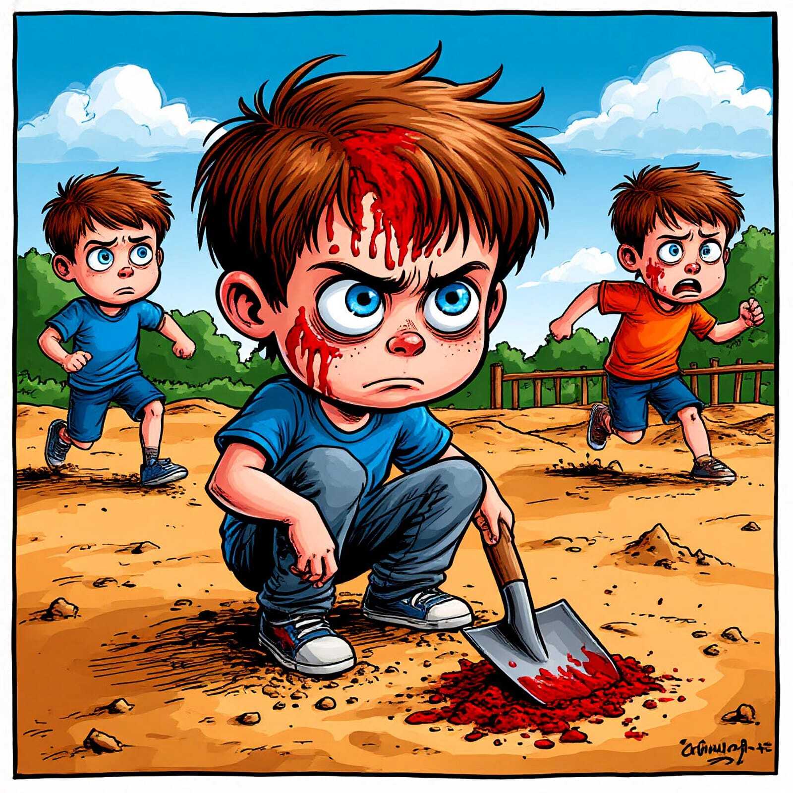 Два пацана в песочнице что-то не поделили. Один швырнул металлическую лопатку — второй увернулся. А я, как зритель первого ряда, получил ею по голове. Кровь, вой, шрам на голове.