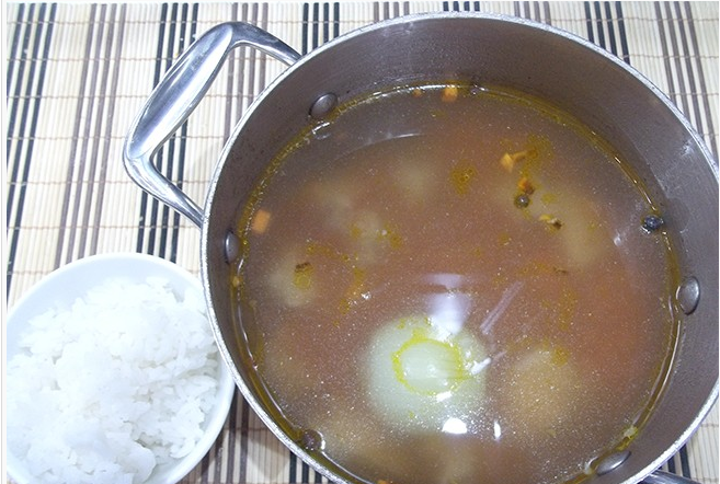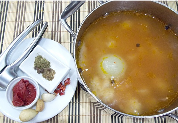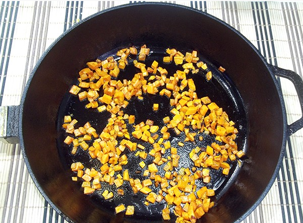 2.Морковь очистите от кожуры, нарежьте кубиками и пассируйте в сковороде на масле. После отправьте в бульон жареную морковь и влейте аджику.