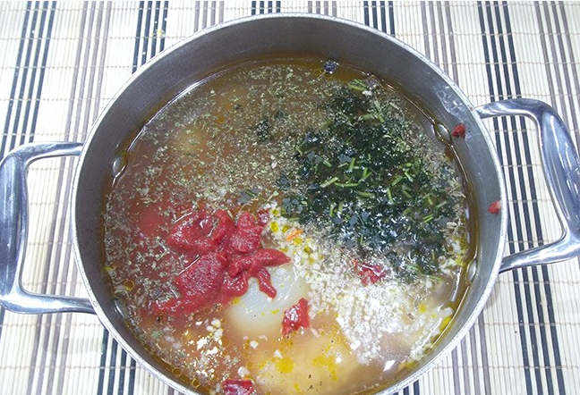 3. Рис предварительно отварите до полуготовности. Пропорции воды должны составлять 1:2. Затем в кастрюлю закиньте рис.