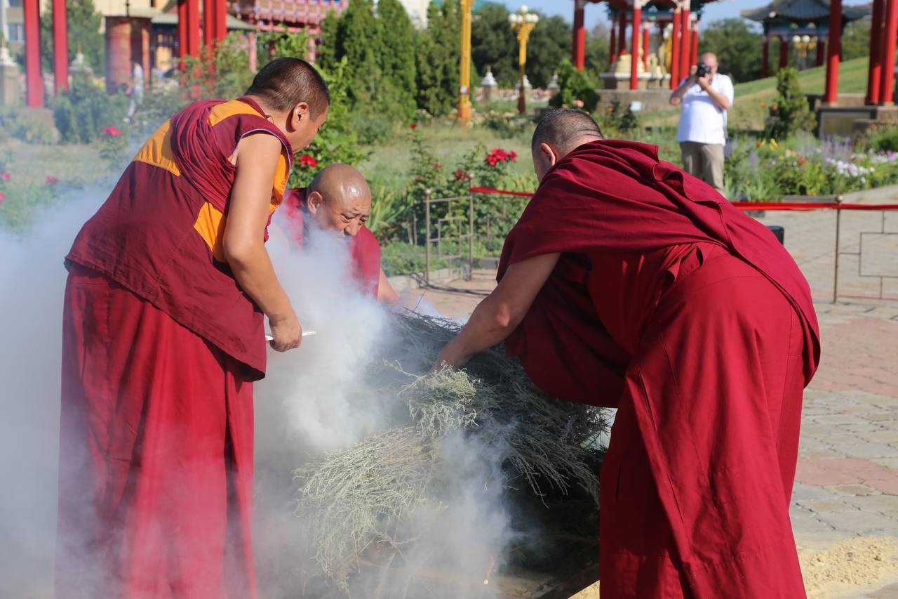 Только недавно на территории «Золотой обители Будды Шакьямуни» завершился ритуал «Сангсоль». Монахи и верующие подготовили особые подношения божествам, защитникам-покровителям Далай-ламы: 3 белых и 3 сладких субстанций и, конечно же, благовония. Сегодня все буддисты мира отмечают День рождения нашего Духовного Лидера. И все молитвы сегодня возносят о Его долголетии.