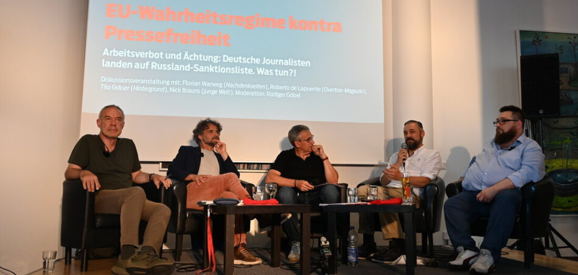 Мероприятие, посвящённое санкциям ЕС против немецких журналистов, в помещениях редакции «Юнге Вельт» (Берлин, 3.07.2025).