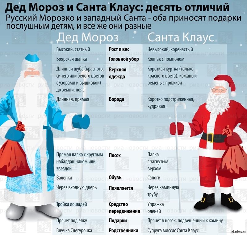 Skilver Санта Клаус и Дед Мороз. 10 лет назад Такая сравнительная таблица вроде уже была. но тут наглядно) Не мое Санта-Клаус Новый год Дед Мороз