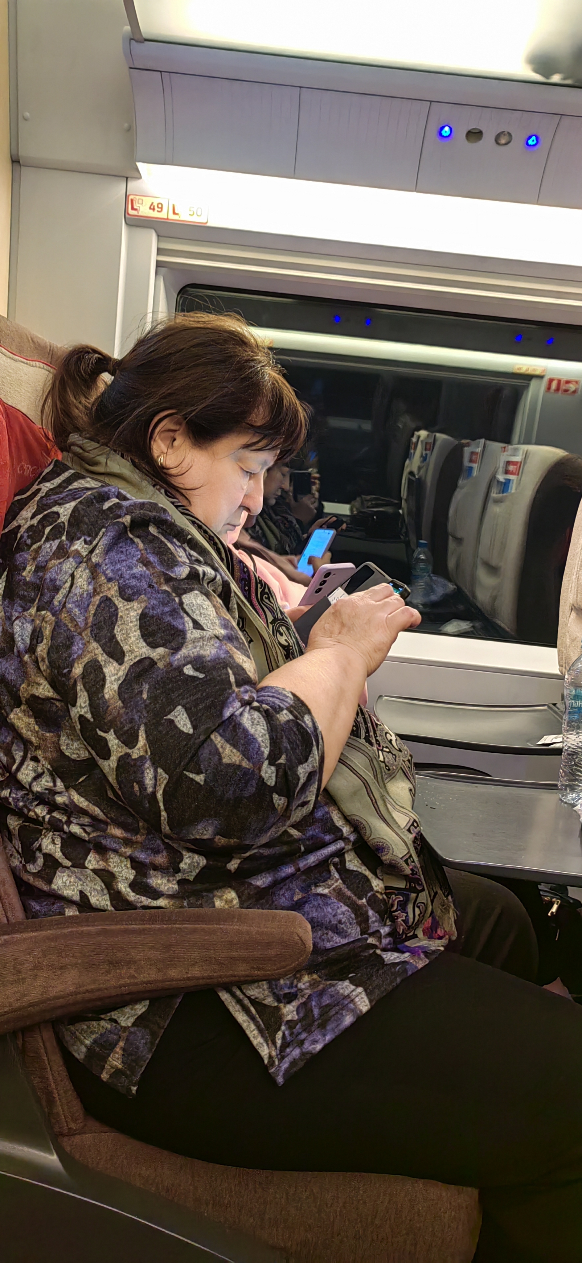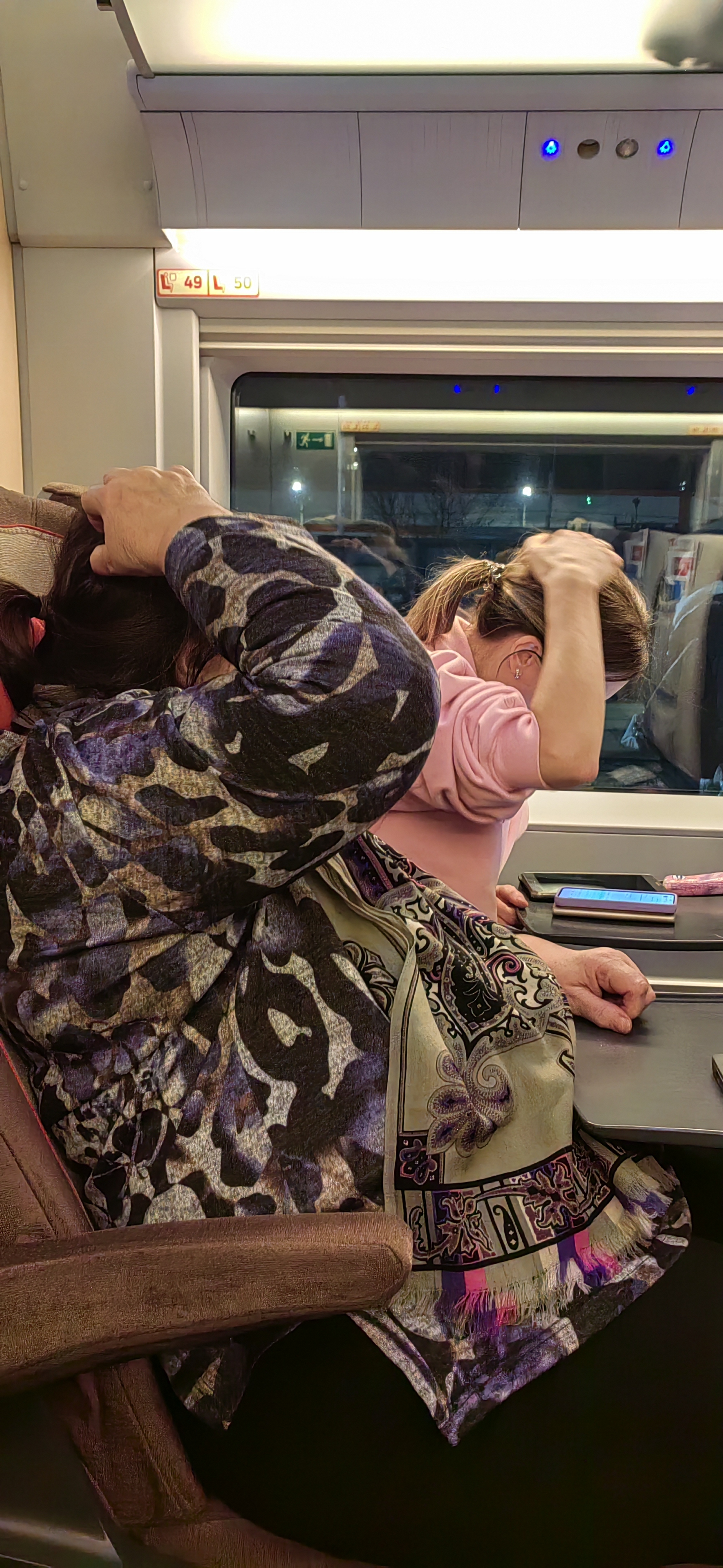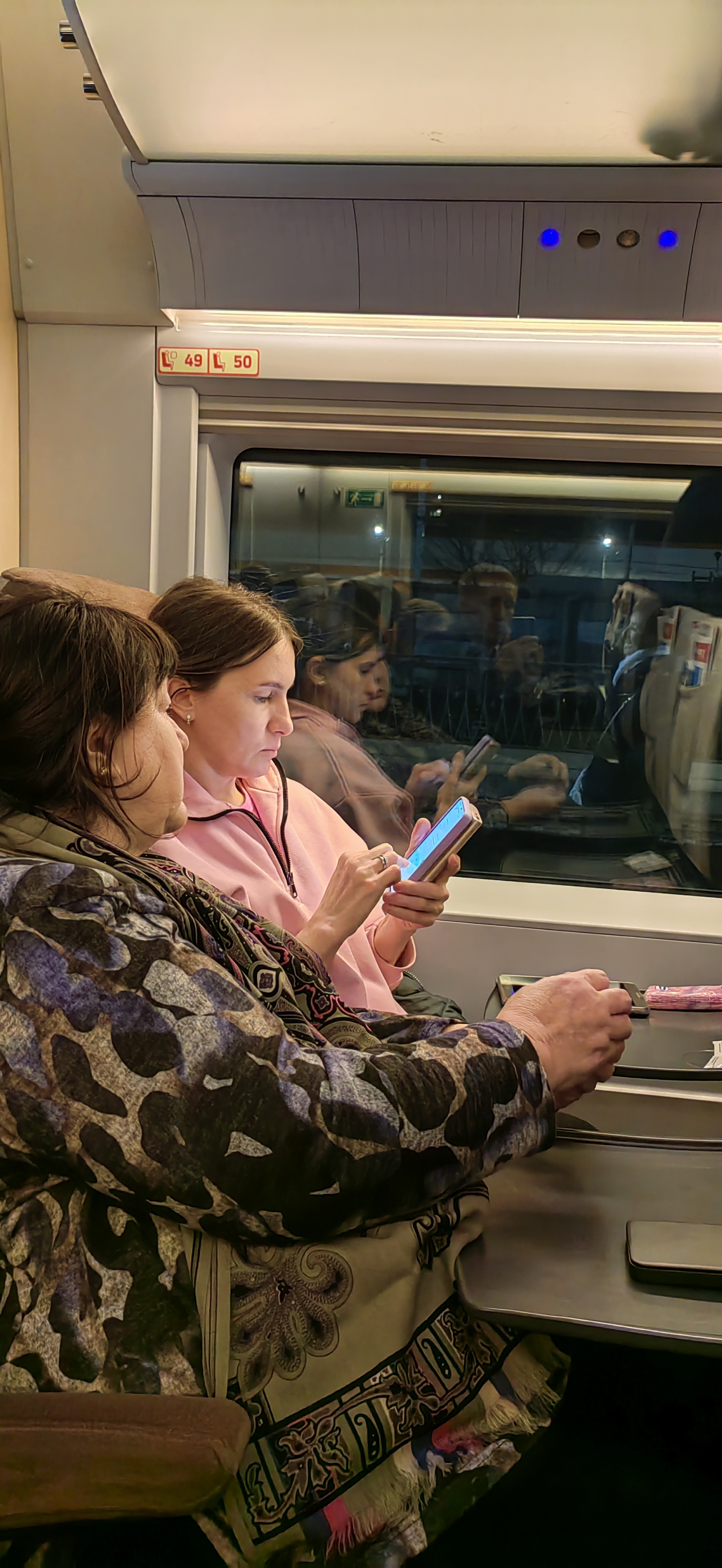 Но... как оказалось, я сильно ошибался. Не думал, что подобные экземпляры окажутся рядом со мной, потому что такие ездят обычно в плацкарте. Итак. Не успели они сесть в вагон, сразу откинули столики и заставили едой. Мы ещё не тронулись, а они приступили к жору. Отправление было в 17:10, а жрали они до 19 часов. Два часа шуршания пакетами и чавканья. Съедали одно, тут же из сумок доставали следующее))) Кроме того, у молодой (как я понял, дочери) постоянно пищали смартфоны, несмотря на просьбу от машиниста соблюдать тишину - об этом и объявляли и постоянно надпись высвечивалась. Полный игнор от этих. У дочери было два смартфона, уведомления приходили каждую минуту и она отвечала. После того, как нажрались, мамаша сказала "хорошо" и присоединилась к дочери создавать какофонию звуков, играя в игру на своём смартфоне. И тут на моих глазах Сапсан из крутого супер-поезда для деловых поездок, для интеллигентного среднего класса превратился в колхозный поезд для недалеких безкультурных индивидов. Жаль, что в этом поезде нет фейс-контроля. Не надо меня спрашивать, почему я не попросил сделать потише. Об этом можно попросить воспитанного человека. Просить ТАКИХ это путь к конфликту. А на конфликт после тяжёлого дня у меня не было ни сил, ни желания.