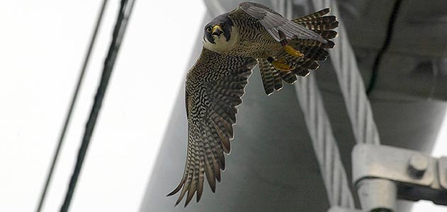 На крышах домов и опорах мостов нередко обнаруживают сапсаньи гнёзда с птенцами:
