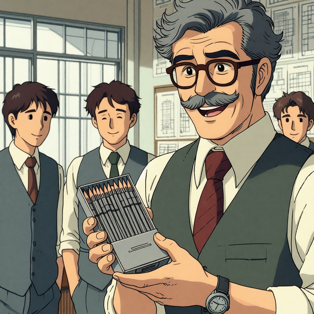 - Сара, мы тут отделом скинулись и решили вам презентовать набор отличных японских карандашей! Пользуйтесь, тут на пару лет запас! Но с вас служебное задание в качестве расплаты: отправить электрика заменить все лампы в чертежных светильниках. А то замучили морганием постоянным.
