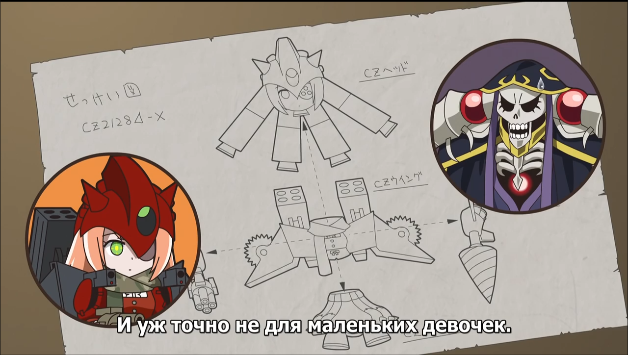 У нас этот момент перевели как "Мечта девушки: сборка и разборка", на что Айнз ей отвечает: "Но девушки явно мечтают не об этом!"