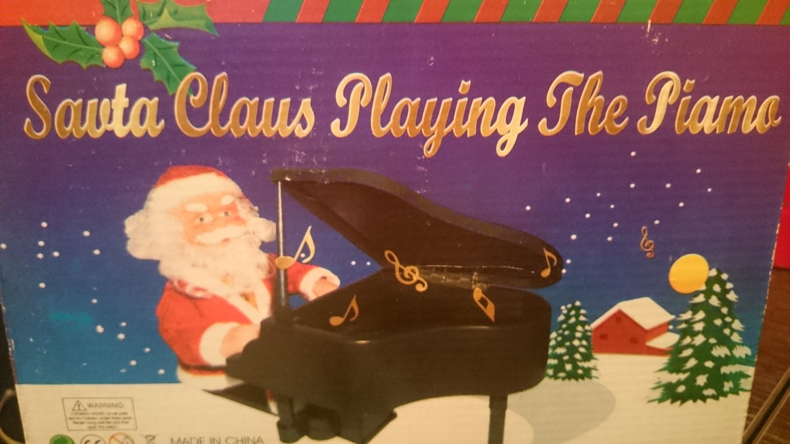 В процессе уборки новогодней утвари обратно на антресоли, на упаковке из-под играющего на рояле Санты была замечена занятная интерпретация английских слов в названии и тексте инструкции. В хорошем настроении и с учётом наличия базовых знаний английского, при попытке перевести на русский язык может быть немного смешно.