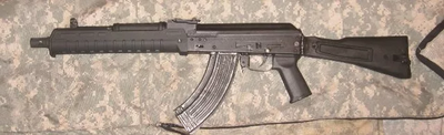 Моя Сайга-308-1 в камуфляже от производителя краски "Тайга" и с пистолетной рукоятью от АК-12 первой серии.
