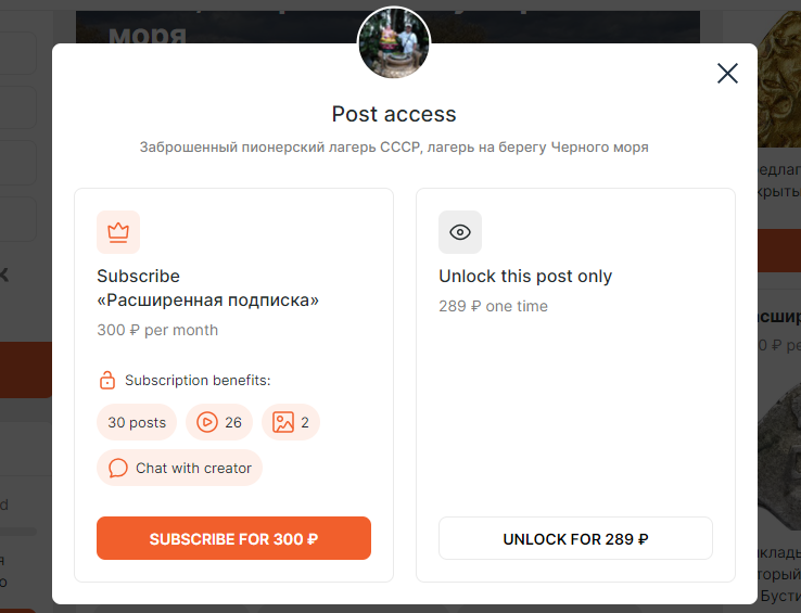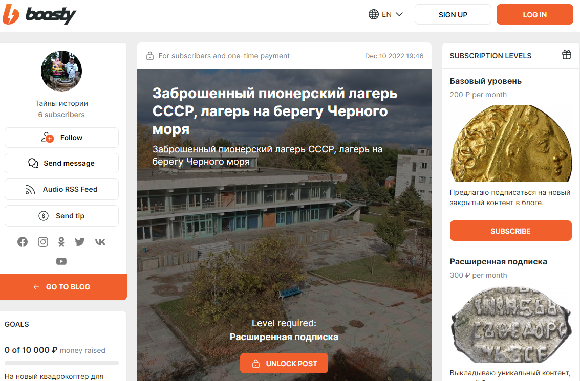 Некий Артур Шмаков опубликовал на сайте Boosty материал про заброшенный советский пионерский лагерь на берегу Черного моря, за доступ к статье Артур и Boosty хотят денег. В заглавном фото я узнал свой снимок, сделанный и опубликованный в репортаже в 2017 году. Вот только на Boosty копирайт со снимка обрезан, что говорит о целенаправленном плагиате. Автора фото, то есть меня, предпочли не спрашивать и не уведомлять о коммерческом использовании моего контента. Стоимость одного просмотра поста оценили в 289 рублей.