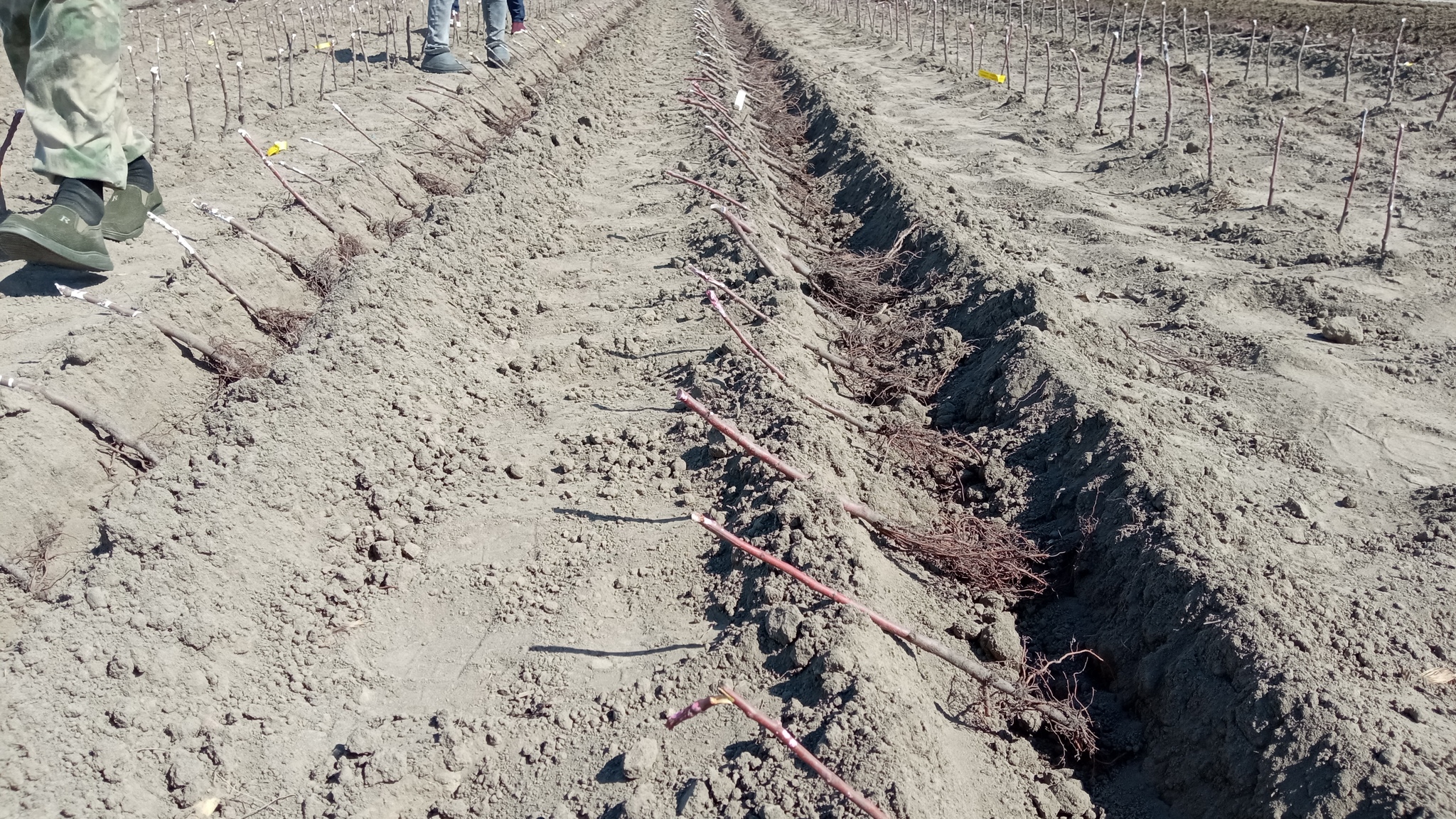 Видео как закапываем - ниже. Саженцы немного другие - другой рабочий день. Но принцип тот же - втоптать землю посильнее.