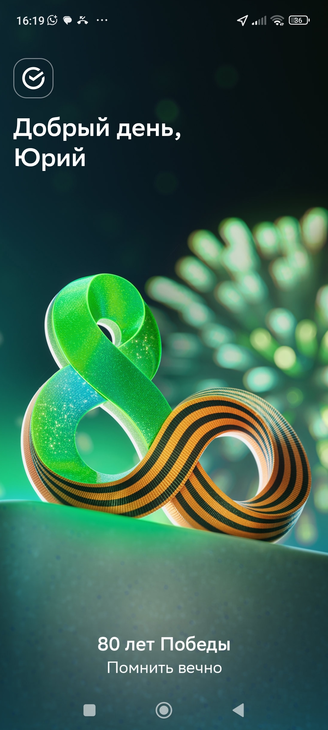 Странная праздничная открытка-заставка у сбера. На мой взгляд тут завуалированная дата 8 мая. А это день окончания ВМВ который празднует западная коалиция. Во первых нет цифры 9. Во вторых нет и числа 80. Но есть восьмерка плавно перетекающая в знак бесконечности. Единственно что вселяет надежду это георгиевская лента. Вселяет надежду в то, что это просто неудачное художество.