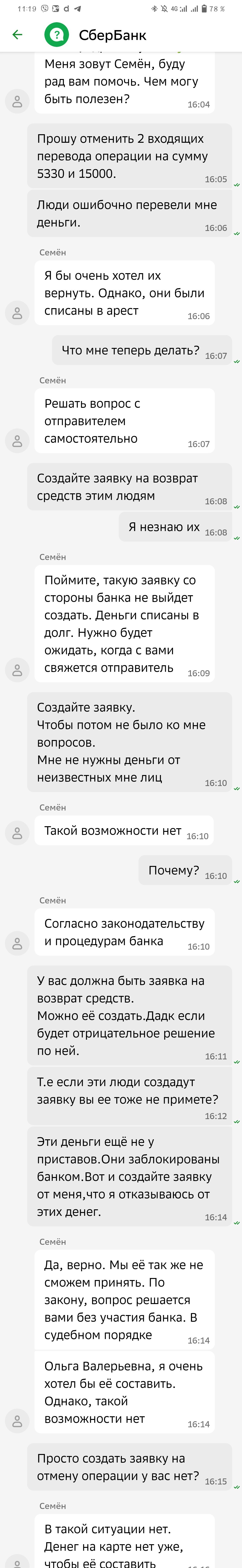 Я звоню в поддержку. Говорю,что деньги мне эти не нужны. Людей я этих незнаю. И прошу отменить операцию. В ответ слышу,что ни чего сделать нельзя.
