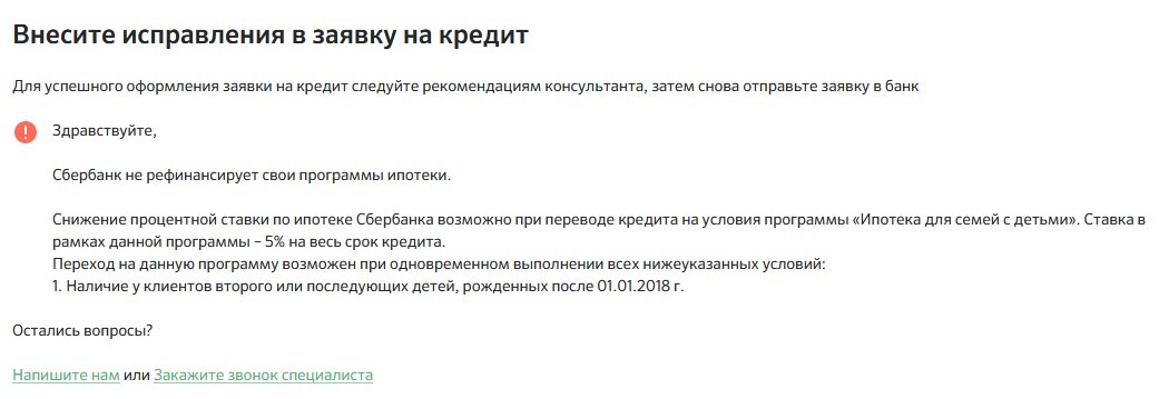 То-есть, я, гражданин РФ, клиент Сбербанка, не могу обратиться в Сбербанк с просьбой рефинансирования ипотеки, потому-что моя просьба не попадает под их шаблон.