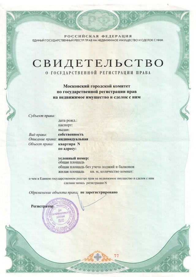 Свидетельство о государственной регистрации права. Сначала было зеленного цвета, потом оранжево-розовое, потом вообще белое(обычный а4 лист). Сейчас выписки из ЕГРН.