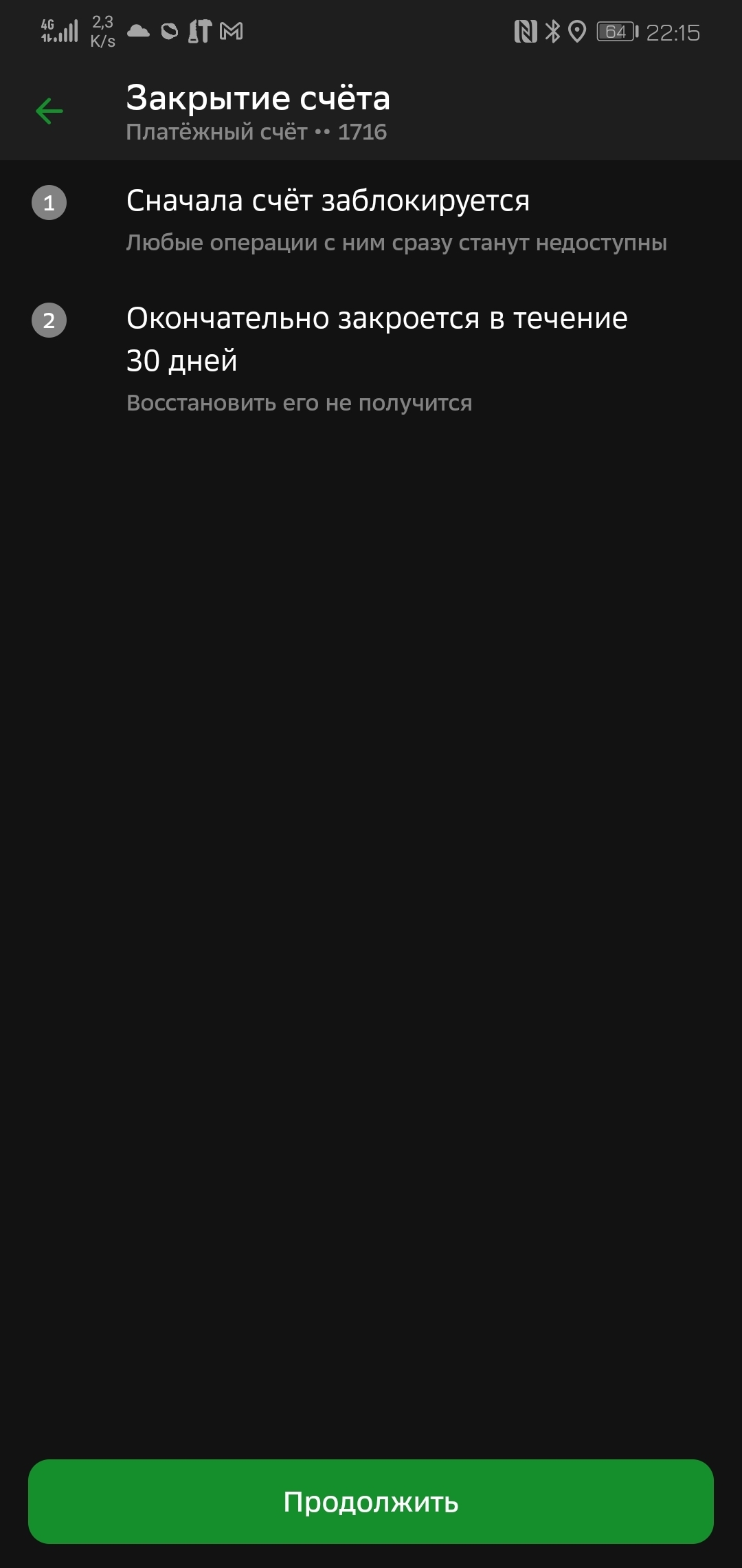 Счет закрыт и остаток был в сумме... которую я положил туда 2 дня назад.