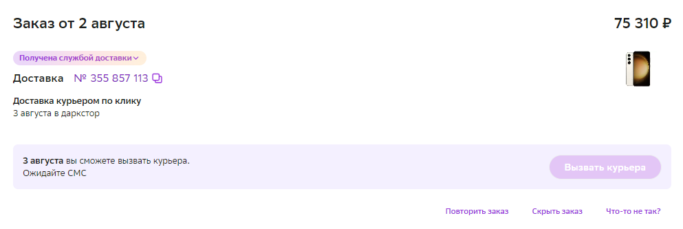 06.08.2023 я получил СМС, что заказ задерживается, довезём его до 8 августа, ждите...
