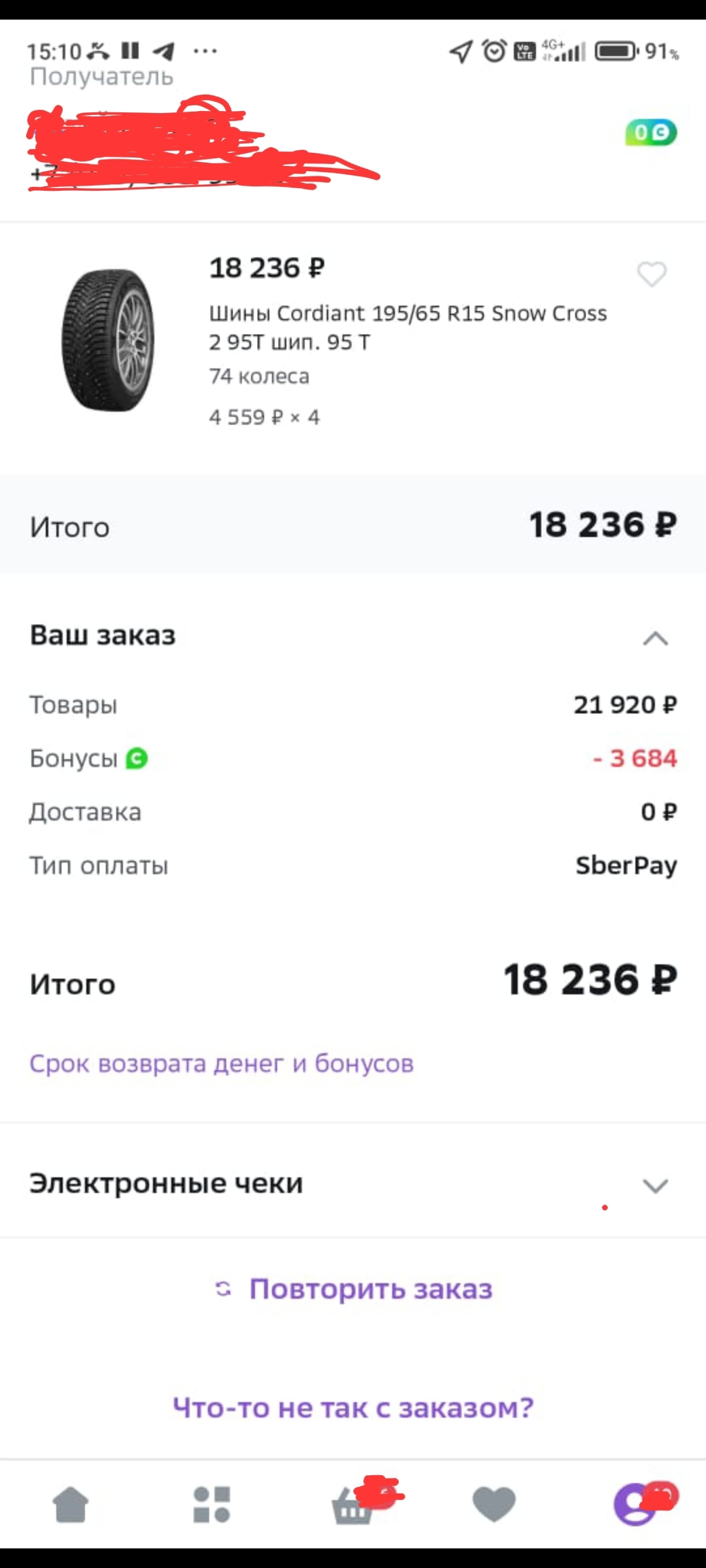 Был оформлен заказ на 4 покрышки, доставка на 19 декабря, наступает день, звоню курьеру: