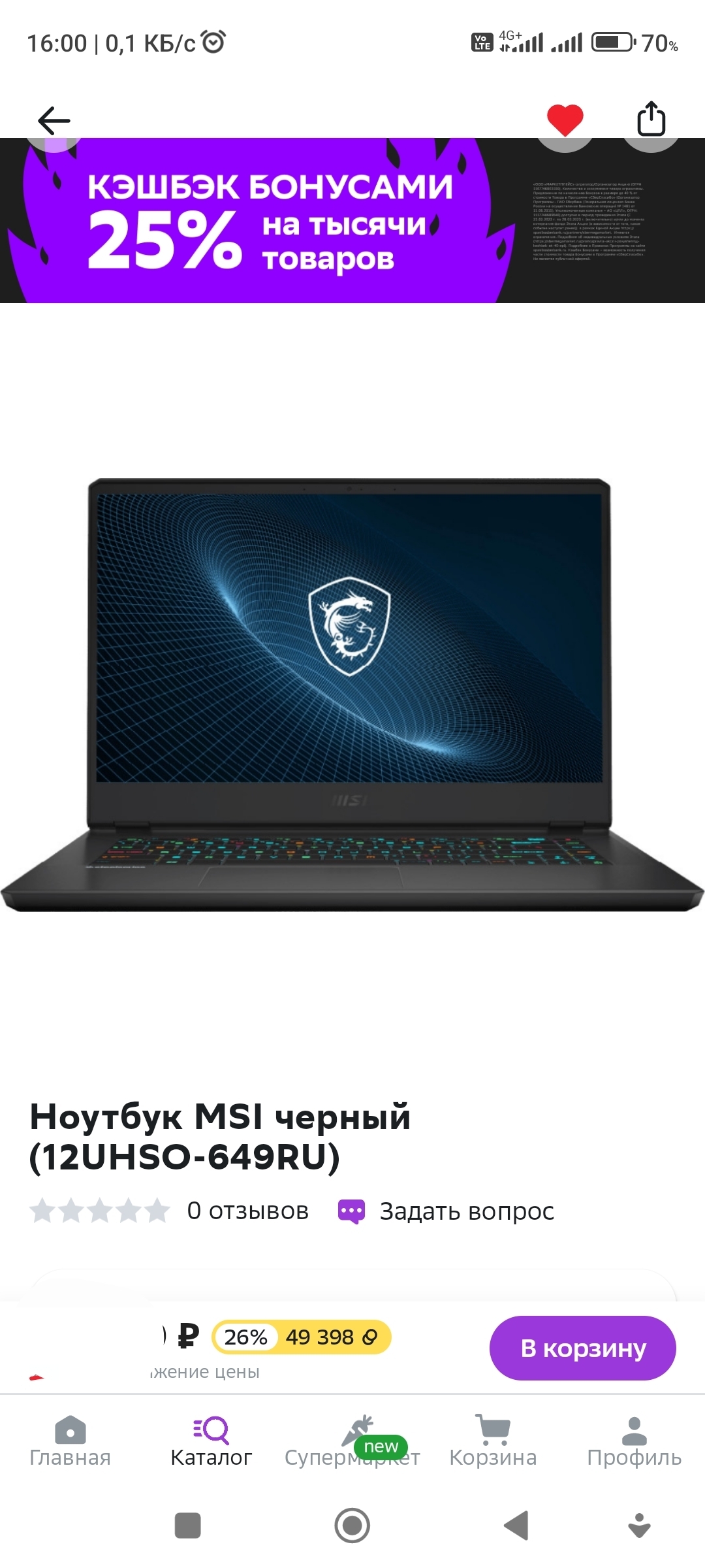23го февраля(мужики с прошедшим!!) сбермегамаркет просто атаковал уведомлениями о просто нереальном кэшбэке и больших скидках в честь праздника. Собственно по этому и было принято решение порадовать себя любимого и подарить мне на праздник ноутбук.