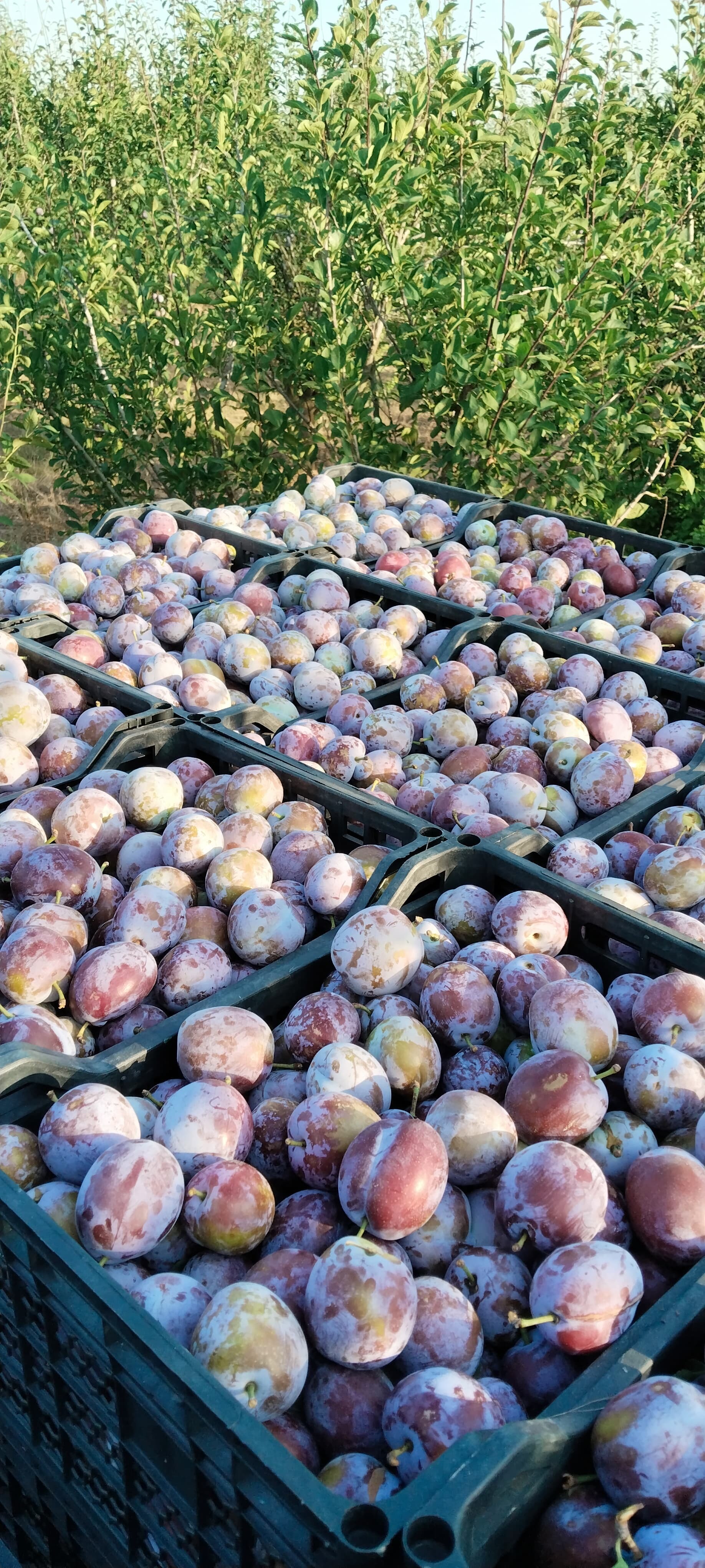 В республике уже неделю идёт сбор слив. Плоды собирают в вёдра, немного недозрелые, чтобы не испортить при сборе и транспортировке. Вёдра пересыпают в ящике на тракторе. Сбор ведётся под покупателя обычно фура-холодильник, или отправляется на хранение в овощехранилище - холодильник, в котором поддеодивается оптимальная температура и влажность, для долго хранения в ожидании оптового покупателя.