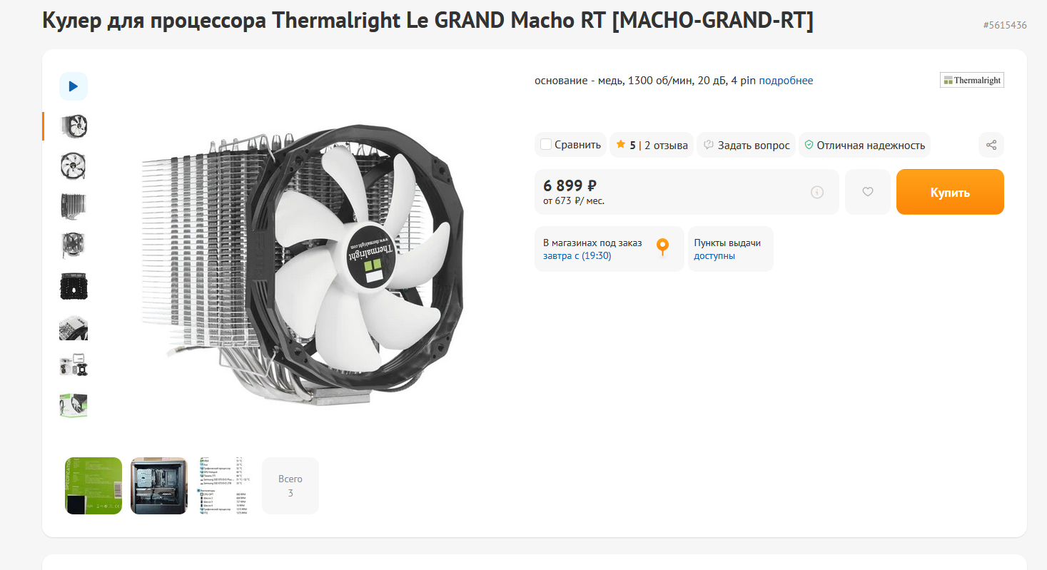 Как вариант можно кулер заменить на Thermalright Le GRAND MACHO RT, комп будет тише. Также если в будущем появится возможность прикупить камешек погорячее и по мощнее, то кулер в любом случае нужно будет менять.