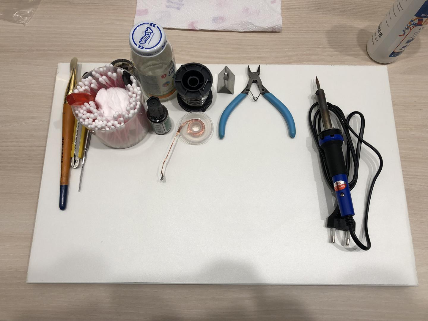 Приходя вечером с работы, я доставал из шкафа свой «верстак» выполненный из оставшегося после ремонта, элемента фасада кухни и садился за пайку. Иногда ко мне даже присоединялась супруга, которая после небольшого брифинга брала в руки пальник с припоем, и с жутко сосредоточенным видом припаивала ножки пластиковых панелек к плате ПОИСК-2.