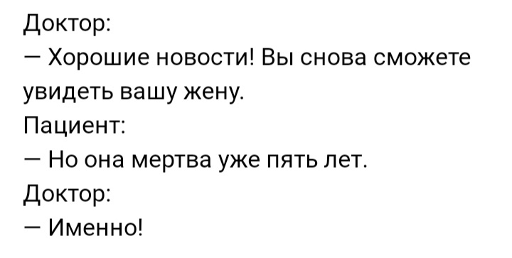 22 MemsMems 1 год назад Палата №6 Сборник анекдотов про врачей Анекдот Врачи Сборник Длиннопост Скриншот Ещё 0