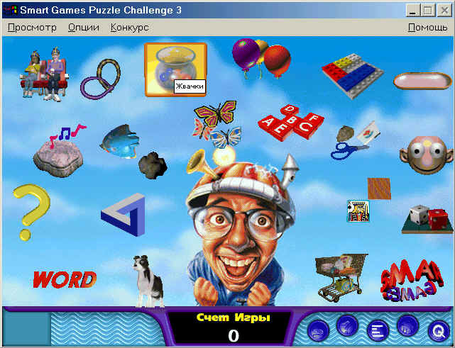 Ищу старенькую игру-сборник головоломок под Windows. В меню - голова, из которой вылетает мозг под веселенькую трубную музычку (играет только в меню, в самих головоломках - тишина). Из игр там были мемори, кроссворды (на английском), танграм, уборка урожая, управление светофорами и много чего еще (всего штук 10), но боюсь приврать лишнего. Олдгеймс и гугл картинки не помогли.