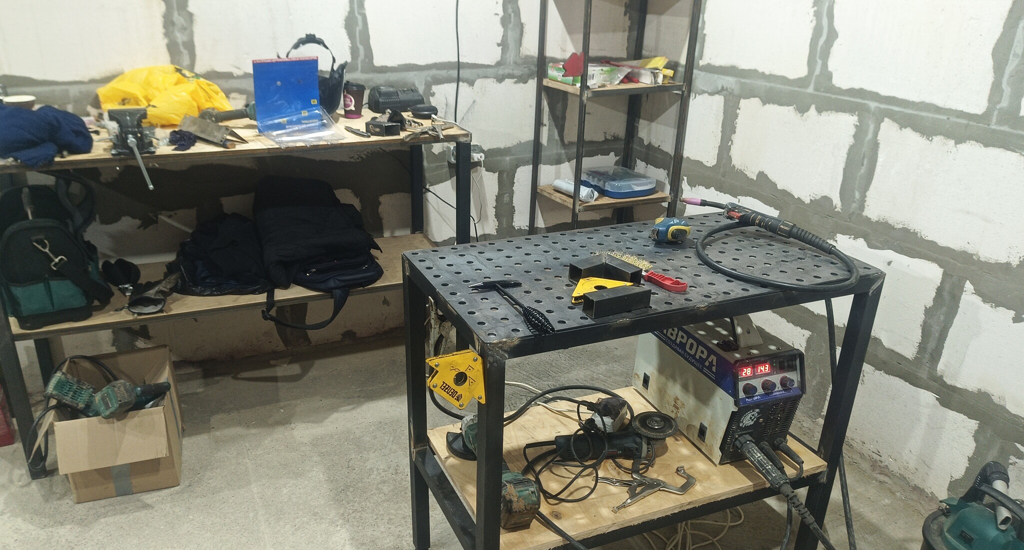 Сильно размазывать не буду, дело было так. В этой жизни я работяга руками, сильно жадный до всяких мужских игрушек и зная это, на прошлый Новый год друзья подарили мне вполне себе годный сварочный аппарат. Давно хотел освоить и это оказалось не так уж и сложно. Важную роль в истории сыграли вздохи подруги - удалёнщицы о том, как ей неудобно работать, что монитор слишком низко, проводов куча и вообще, тыжмастер так придумай что-нибудь. А мне, оговорюсь, очень нравится мебель в стиле Лофт, там много чего интересного придумать можно и мне давно хотелось пару идеек реализовать, но помимо идей и рук нужны хоть какие-то условия, в частности место, так что начал я с этого. Нашёл и арендовал в пригороде гараж, хозяин которого не был против чтобы там варили, пилили и красили. Искал, понятно, подешевле так что гараж был пустой и снарядить пришлось самому.
