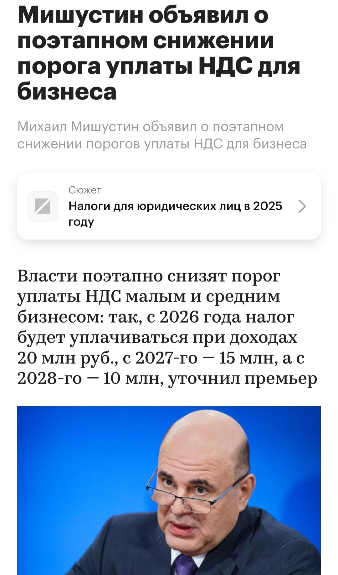 Правительство объявило о поэтапном снижении порога уплаты НДС для бизнеса