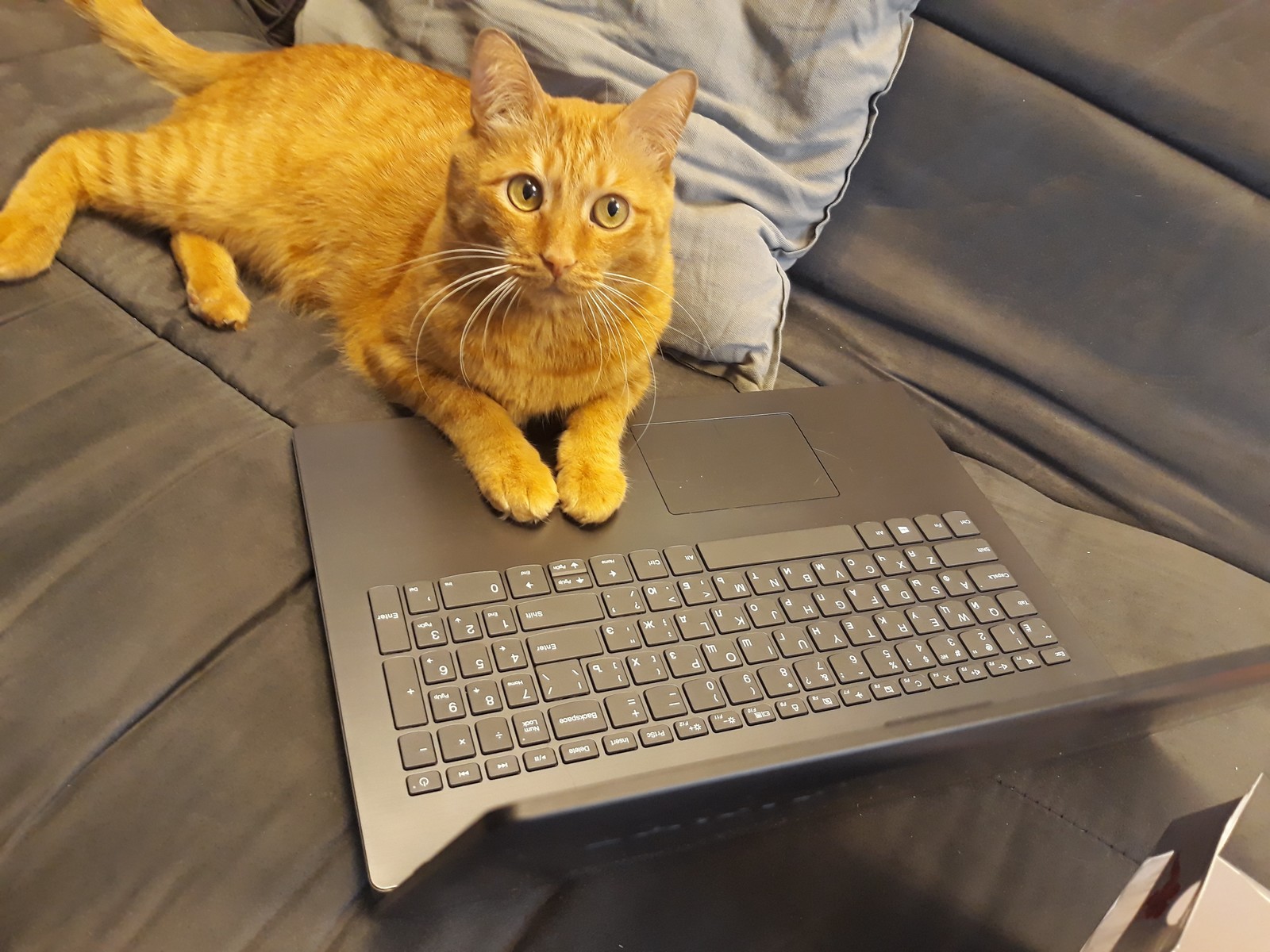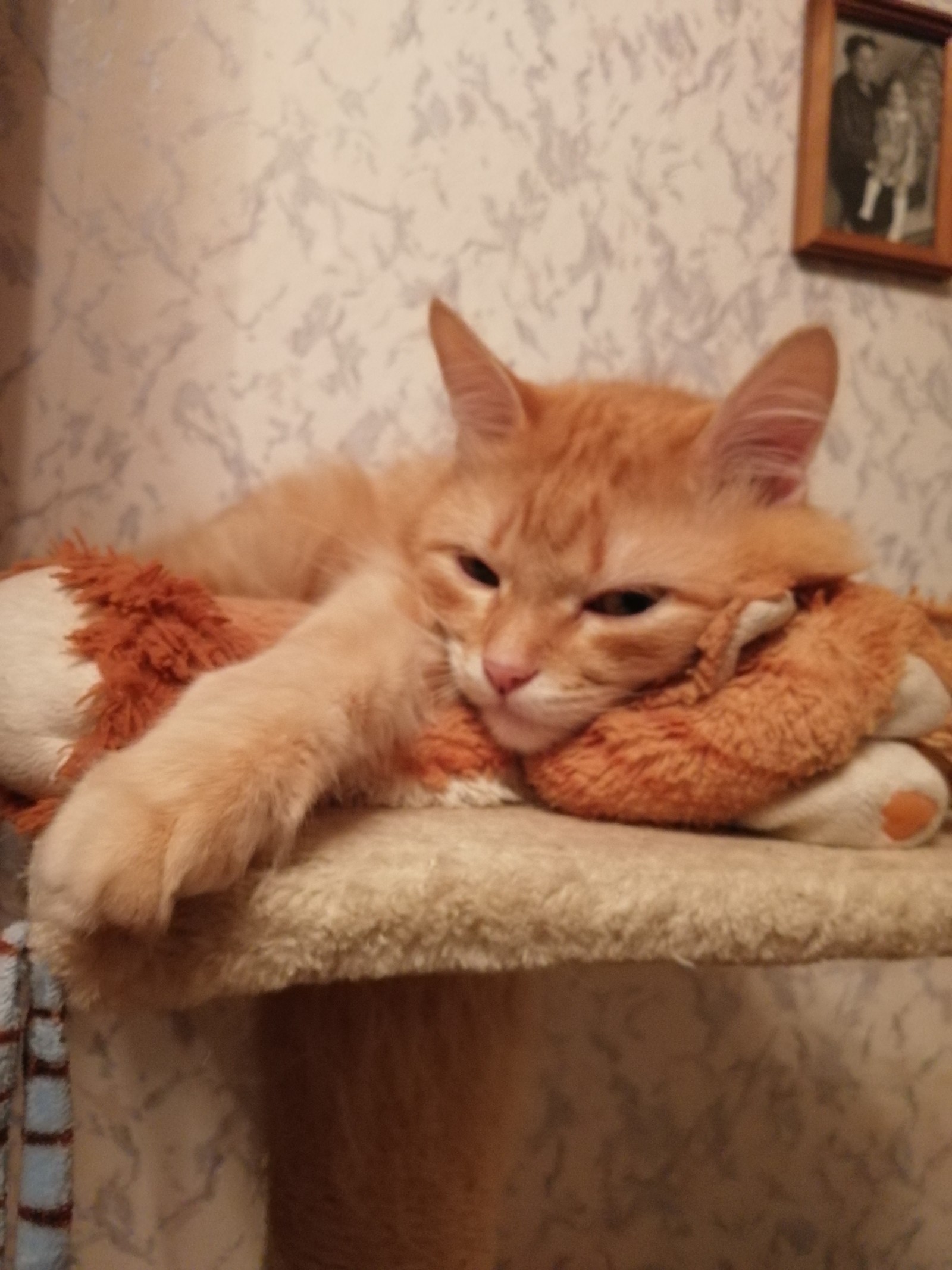 В понедельник вместе с курьером ко мне зашёл вот этот незнакомый рыжий мОлодец. Всё обнюхав, пока я рассчитывалась с курьером, пришёл ко мне, залез на колени, когда я работала, и радостно засопел в две дырки. Чуть позже я вышла в подъезд, вдруг кто потерял и ищет теперь, но узнала, что он тусит там с утра и никто своим его не признал, так что путь мой лежал в зоомагазин за едой и сральней. Очень любит бегать, кусаться, грызть, мурчать и спать у меня перед носом, пока я, значит, обеспечиваю наше пропитание.