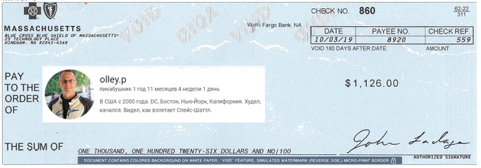 А как же быть с тем счетом на 1126 долларов непосредственно от врача? Оказывается, хотя те врачи не работают со страховкой, но они свой счет послали и туда. Поэтому страховка в свою очередь просто прислала мне банковский чек.