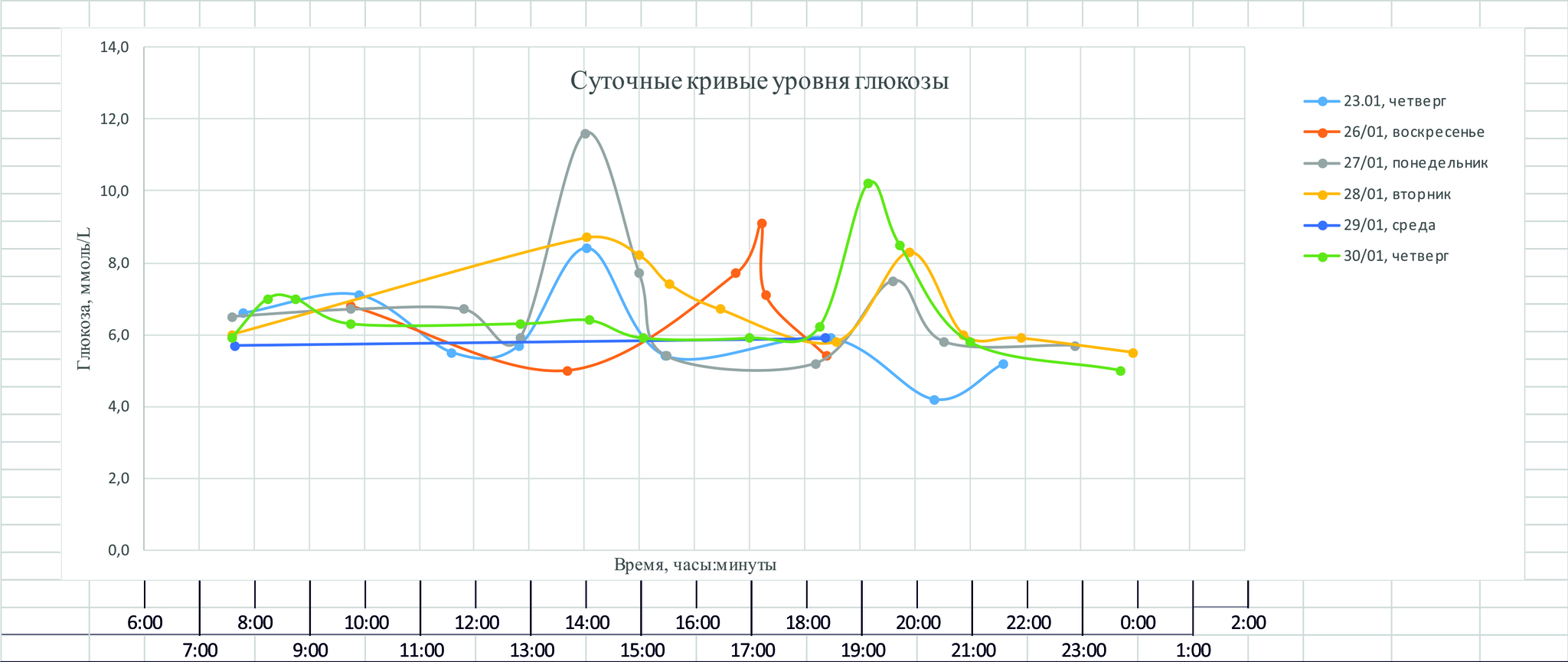Но! Есть, есть одна более чем отчетливая связь низких цифр на глюкометре (<5 ммоль/L) с образом жизни и режимом дня! В качестве примера: