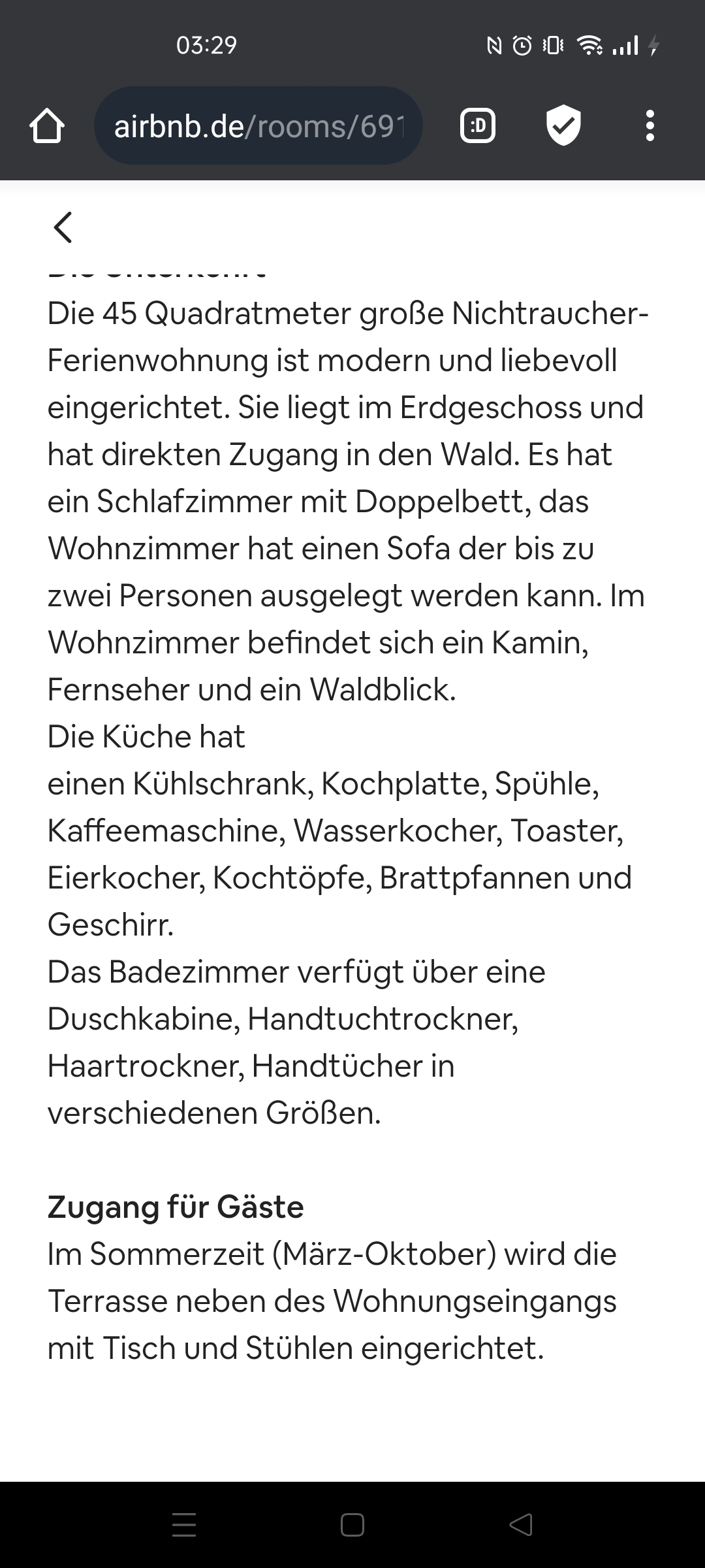 Ну а теперь история, наиболее зацепившая в негативе. Приехали прошлым летом мамаша, сын ее с подругой и младшая дочка мамаши лет 18ти. Зашли во двор и начали нахваливать как им нравится у нас, еще и в квартиру не заходили. Первое зацепило, что приехали с собакой, которая не была заявлена при резервировании. Сказали, что собака добрая ,ну просто душка. У нас собака лабрадорша, уже довольно старенькая 10 лет. И время подошло пойти с ней в лес. Показали все и ответили на вопросы. Муж забрал нашу собаку и пошел с ней в лес. Собаки понятно стали обнюхиваться. А лето и жарко. Младшая из жиличек была в легком сарафане и собаки около нее закрутились и царапнули. Что тут началось. Крики и вопли на всю улицу, что наша собака их девочку покусала. Хотя непонятно было кто там на самом деле был виновен. Муж начал извиняться. Полчаса разборок. Ну вроде успокоились. Мы сказали, что если там серьезно ,то у нас есть страховка и давайте ваши данные и справку от врача и страховка все оплатит. Там крови даже не было. Они собрались и уехали в бассейн. Вечером опять вопли что были в аптеке и аптекарша так жалела их девочку и т.д.и т.п. Это была пятница. В субботу уехали на весь день. Вернулись вечером очень даже поздно после 11 и до 2 ночи сидели во дворе и громко разговаривали. У меня кипело. Ну да ладно - выдержала. Суббота и соседи хорошие. Да и приехали они на две ночи. У нас такое место. Тишина. Лес. И вот Утро воскресенья. Мы часов в 8 идем с мужем через двор в лес.Да надо сказать, наш вход в дом с улицы с одной стороны, а у жильцов со двора. Выходит сын-жилец и начинает возмущаться ,что мы не должны через их двор ходить. Мы посмеялись и ушли. Вернулись другой дорогой, сделав круг. У кого есть собаки, те понимают ,что нужно как можно быстрее утром в лес идти, чтобы казуса по дороге не случилось. У нас холмистая местность и собака справляет свои дела забравшись над тропинкой на несколько метров вверх.