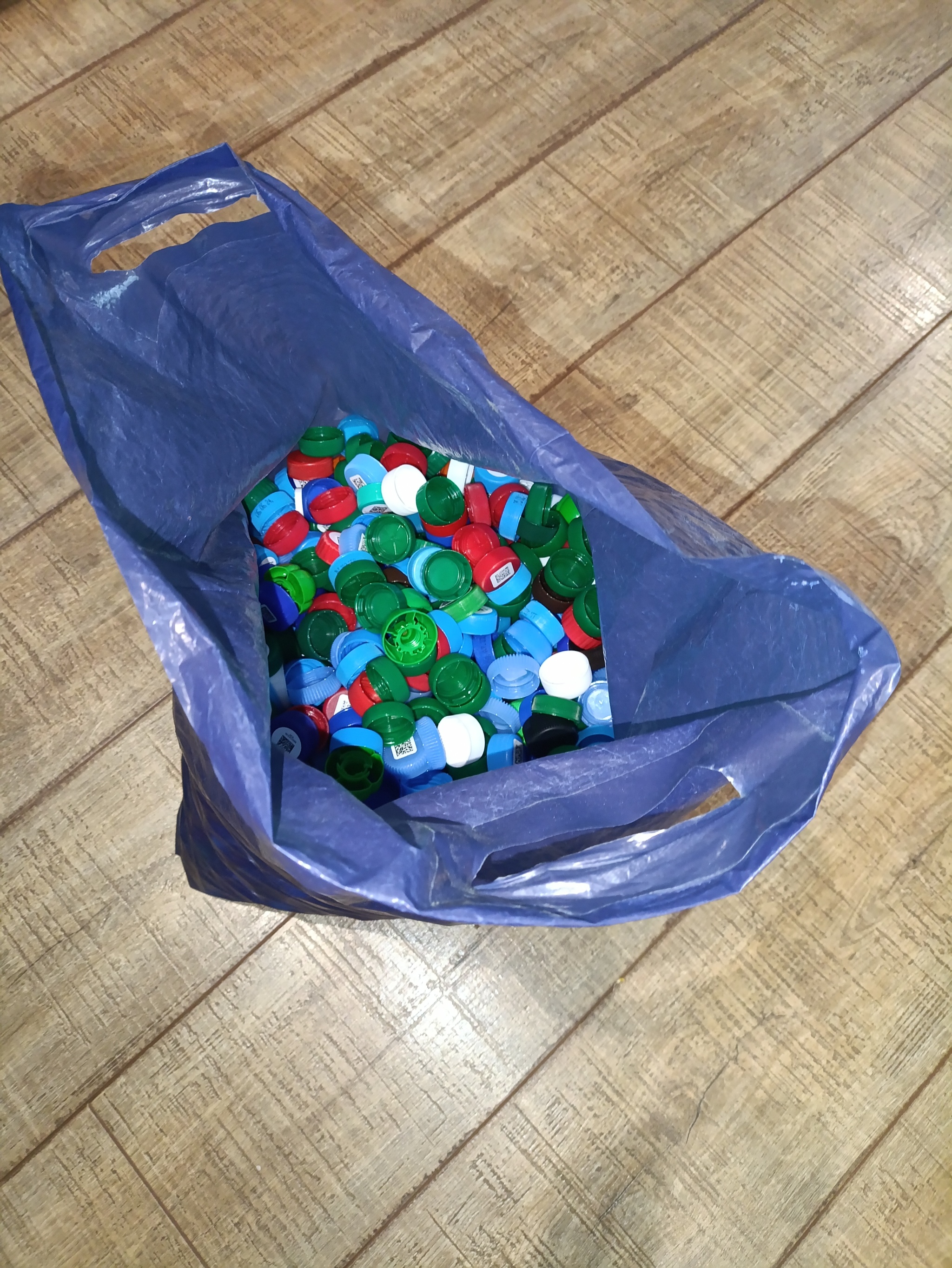 В течение трех лет собираем крышечки от бутылок. Как-то в садике у дочки попросили собрать, мы и собирали. Но акция закончилась, и крышки им стали не нужны. Накопилось на два с лишним килограмма, сдать куда не знали. Тут в городе появился пункт сбора, на жд вокзале, вроде как средства пойдут на благотворительность. Решили всё унести туда.