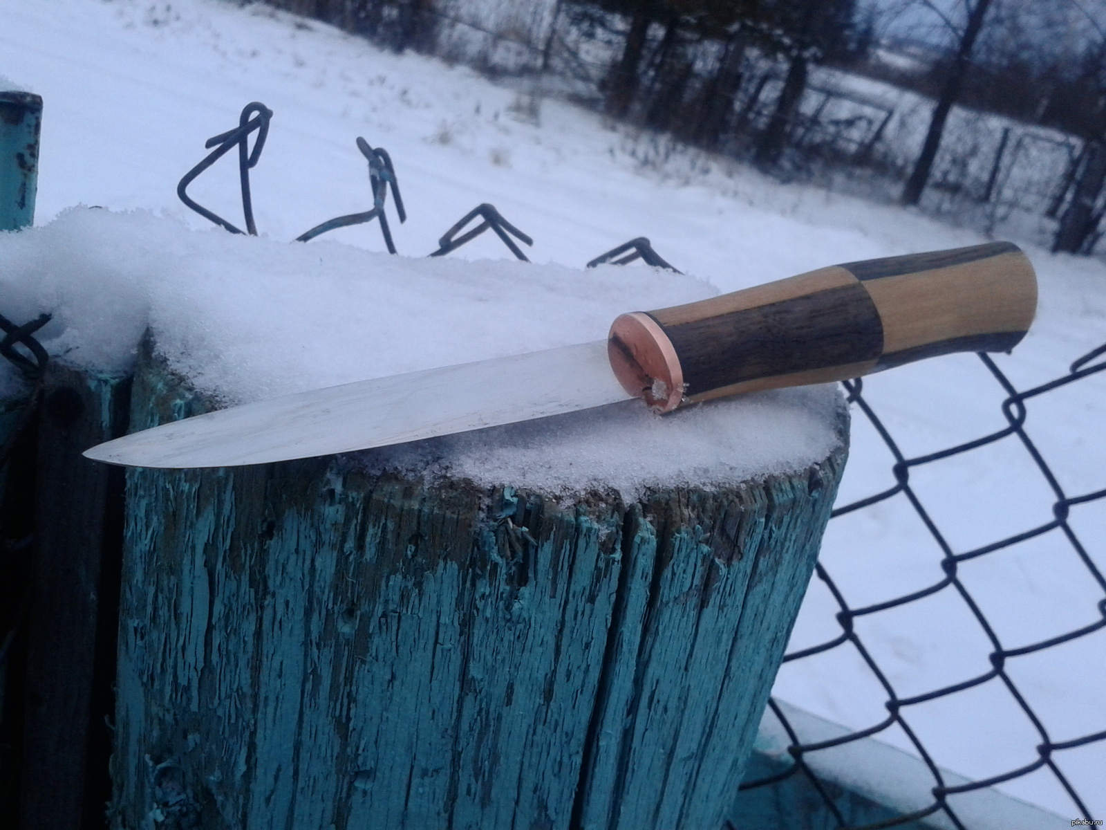627 LevMolot Сделал еще один нож 11 лет назад Рукоять - дуб, береза, медь Клинок - кованая автомобильная пружина Пропитка льнянкой. [моё] Нож Своими руками