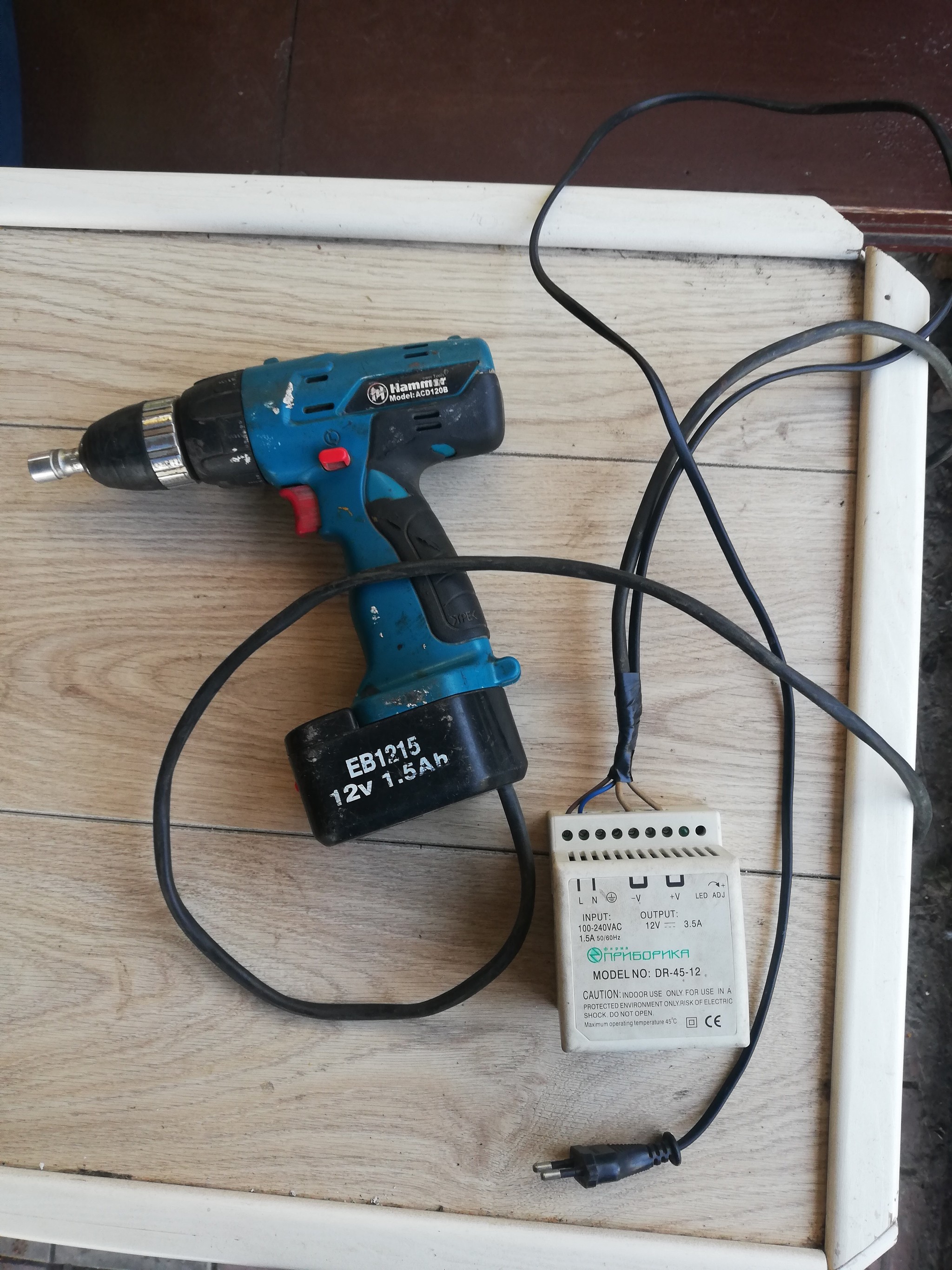 И так, приехал на дачу, надо что то поделать) Ага, шикарный октябрь - буду делать забор. Труба, песок, цемент есть - работай! Но вот не задача нет интрумента, а именно дрели или шуруповерта. Обычно, последнее время я стал брать "казённый" инструмент на дачу, ну как "казённый" - это типа конторский, но на меня записанный, короче почти мой) Это болгарка и дрелька. Но в этот раз не удалась взять. Но, у меня был свой старый, мой любимый шуруповёрт, прошедшей со мной и "Крым и рым", но вот беда - совсем аккамуляторы сдохли. А т.к я работаю инженером КИПиА, то у меня завалялся блок питания на 12в и вот, что вышло: