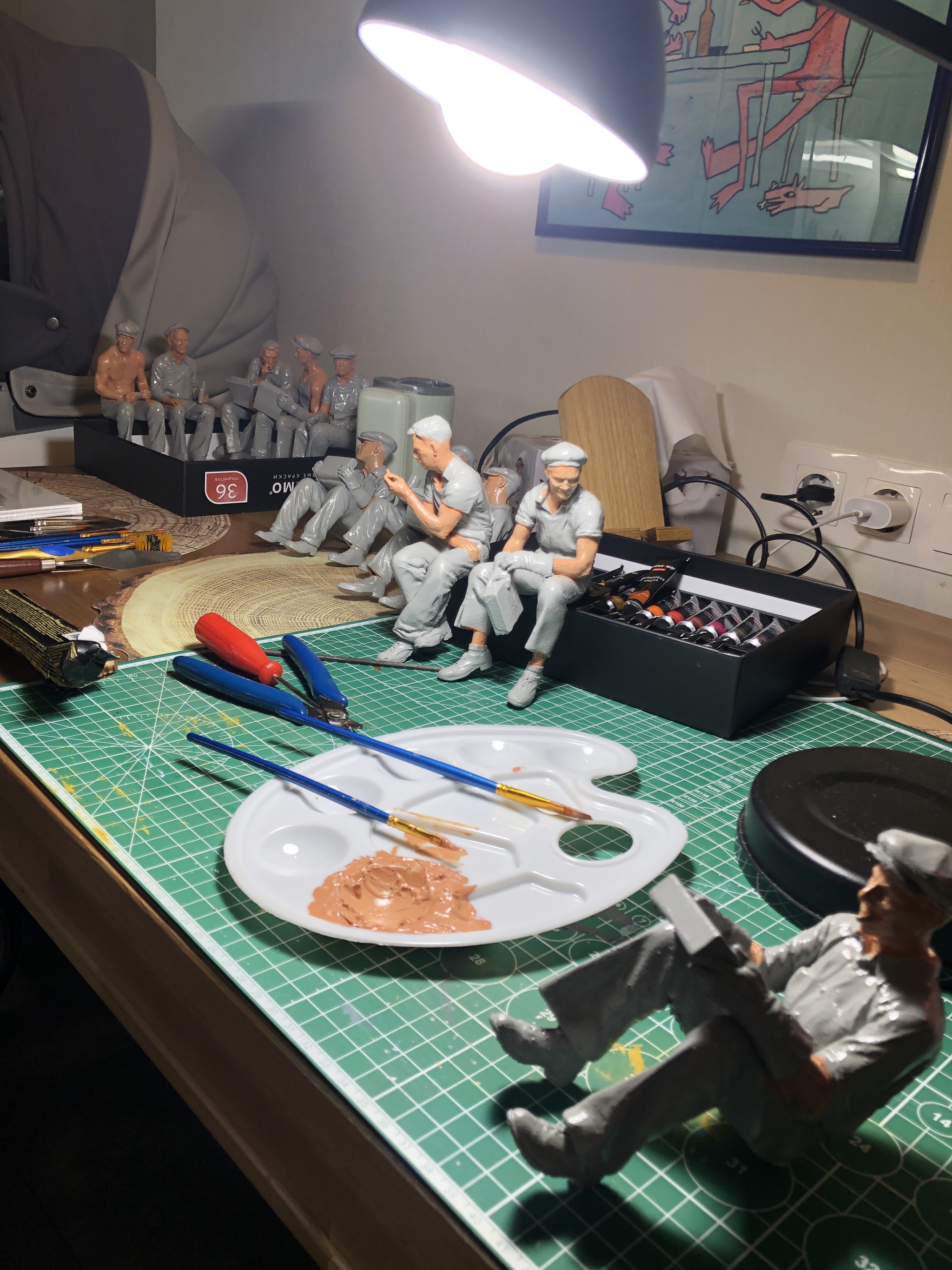 Я долго подбирал светильник и размер конструкции под него. Потом долго разбирался с исправлением готовой 3д модели под свои нужды. Про покраску вообще промолчу - я пошел самым сложным путем и решил сделать фото более живым, то есть цветным. Благо в интернете есть много восстановленных фотографий в цвете, благодаря нейросетям (не знаю насколько цвета соответствуют реальности, но меня результат устроил)