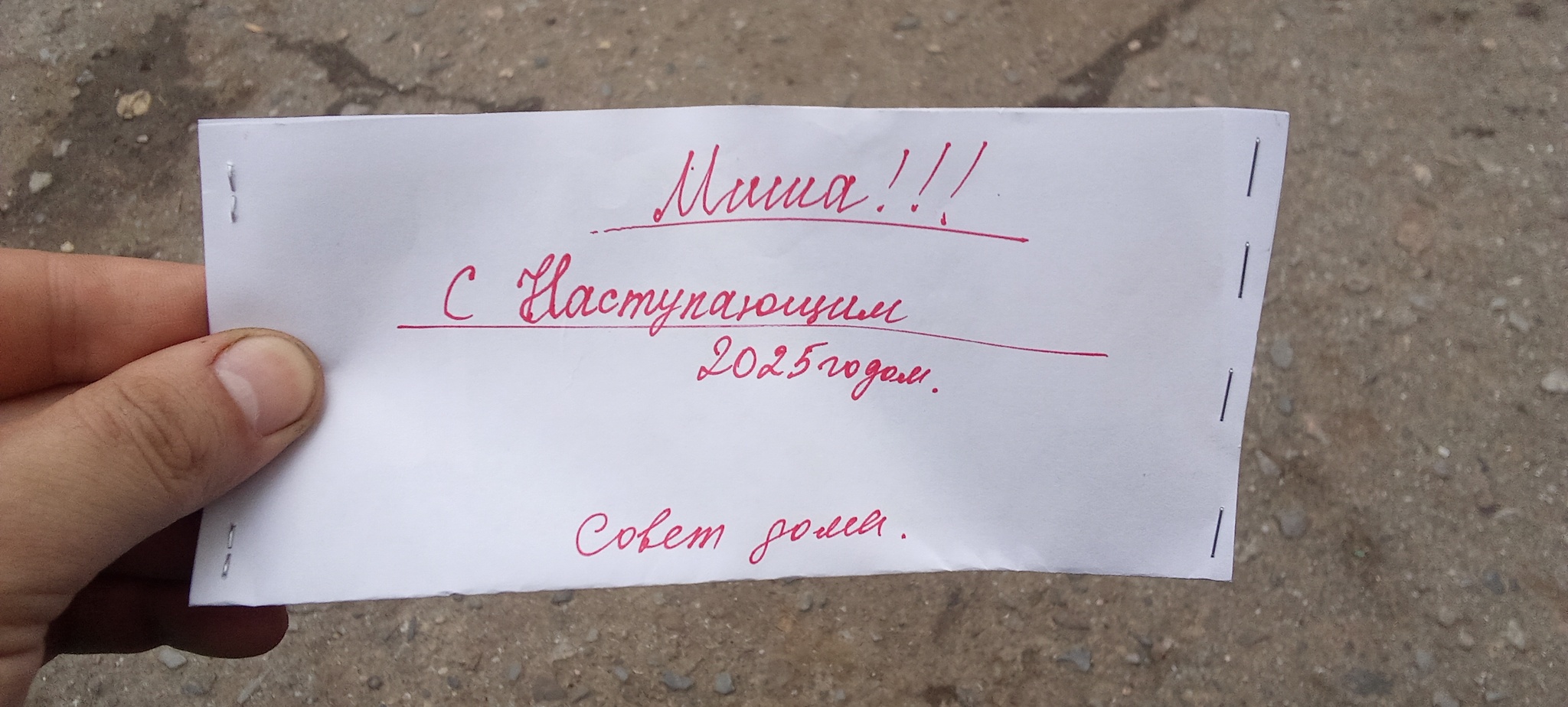 Я работаю дворником и сегодня совет дома сделал мне подарок. Старшая вручила вот такой вот конвертик.