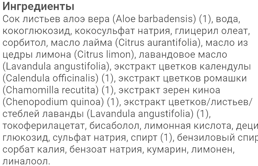 Так что ну прям фруктовой полезности, как рисуют маркетологи, тут нет никакой - ни масел, ни алоэ ебучего какого-нить. Вода, соль, химия.